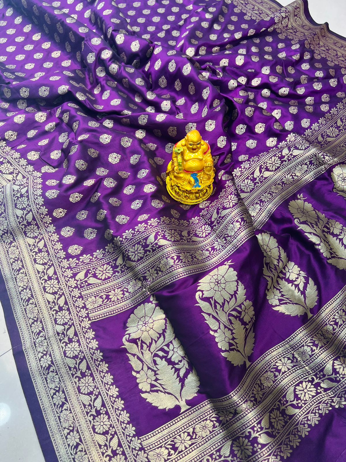 Evocative Purple Banarasi Silk Saree With Seraglio Blouse Piece