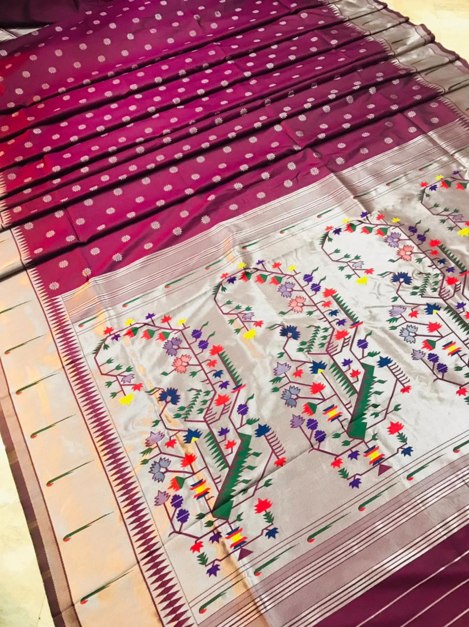 Flattering Purple Paithani Silk Saree With Magnetic Blouse Piece