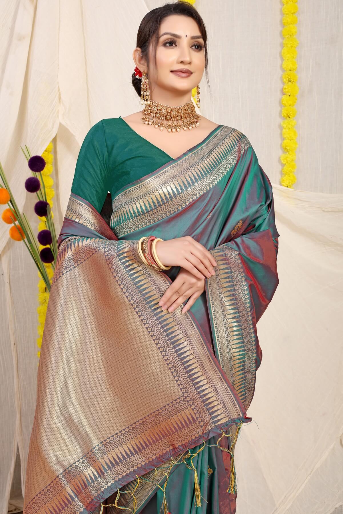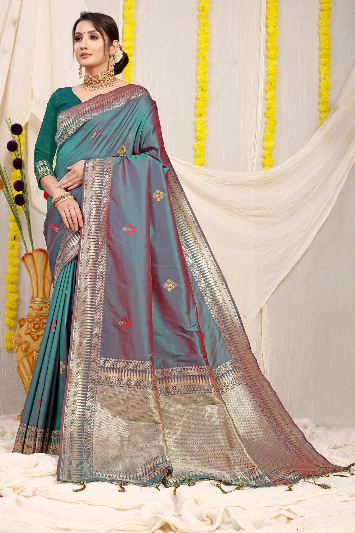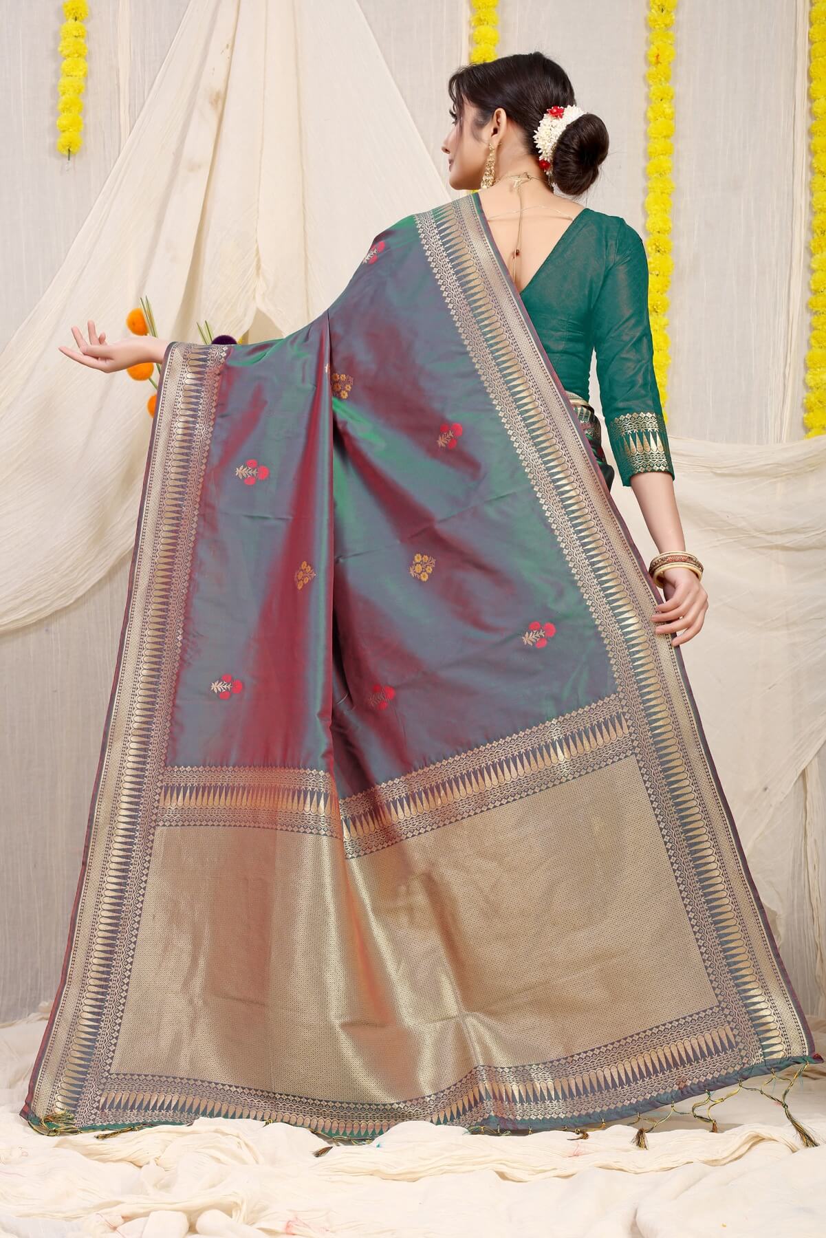 Flaunt Grey Banarasi Silk Saree With Magnetic Blouse Piece