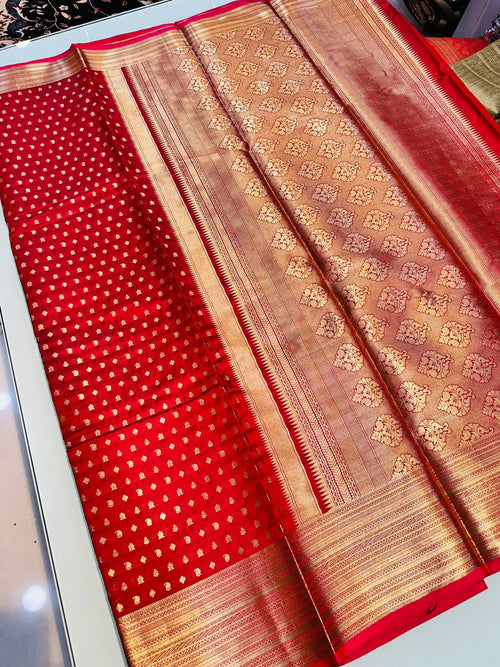 Glamorous Red Soft Banarasi Silk Saree With Ethereal Blouse