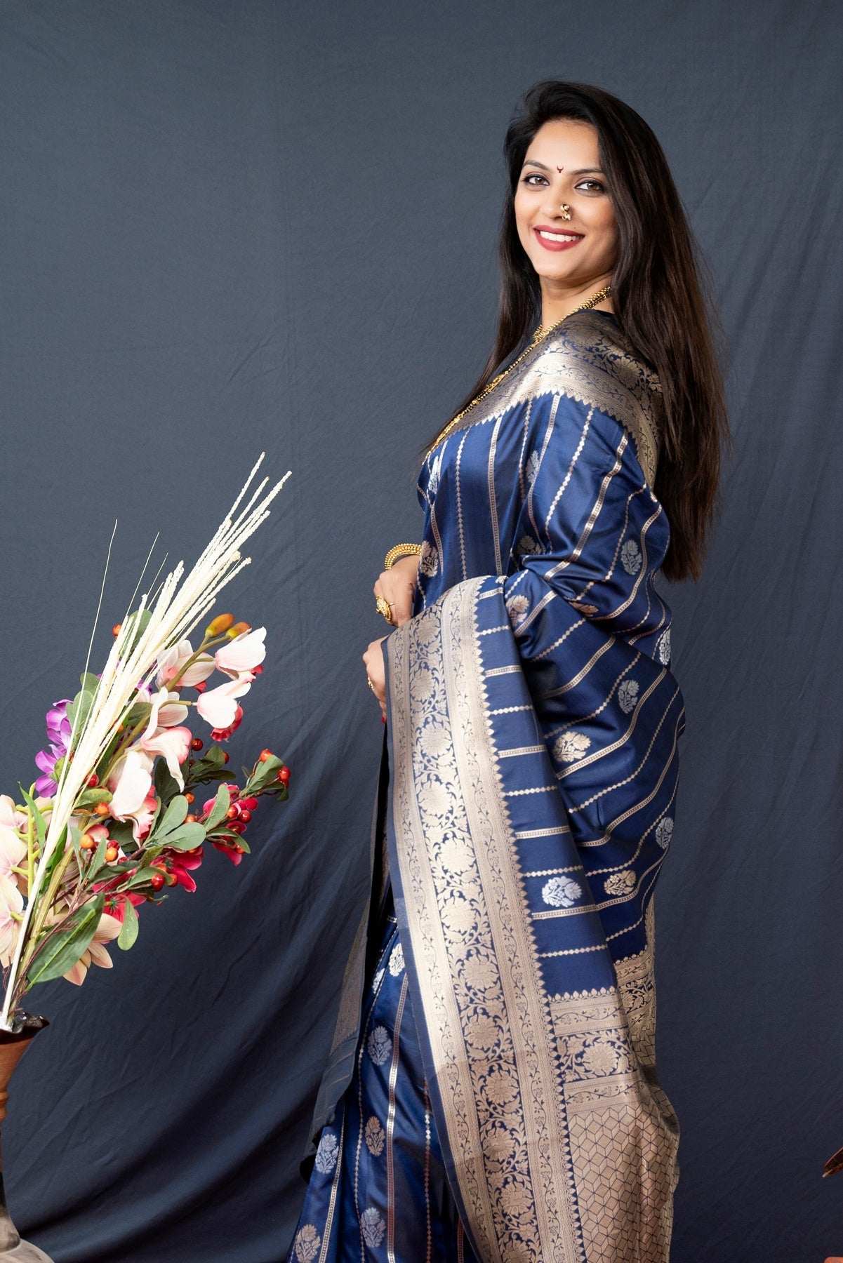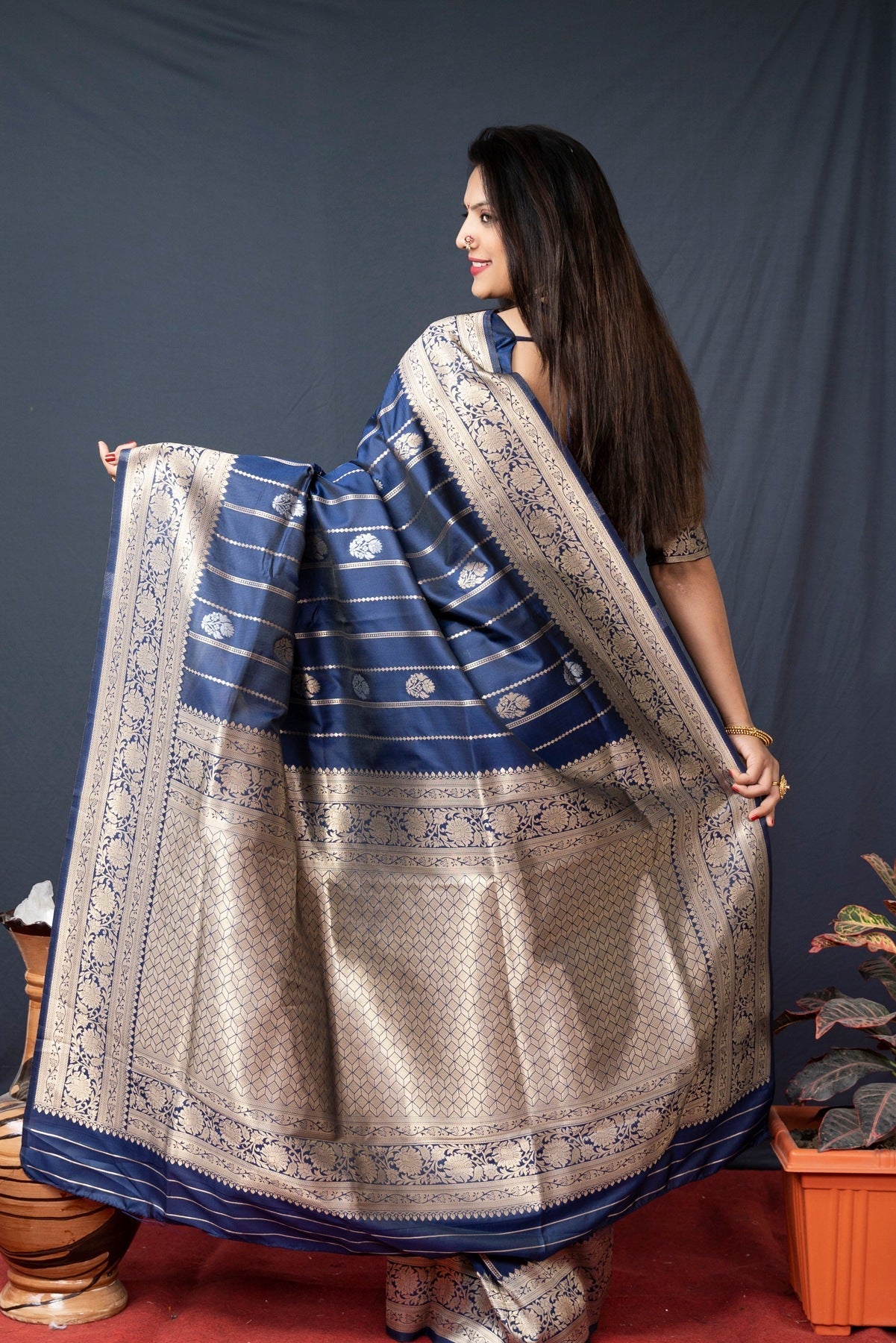 India is a home of various silks, and banarasi is one amongst them, the luxurious feel banarasi provide is immense. the weaving technique make it different, pair this classic peice with some statment accessories and feel the grand look the next moment!