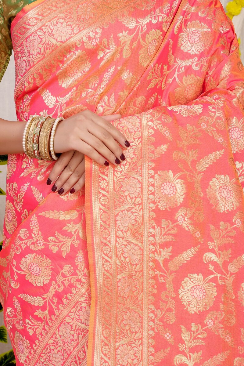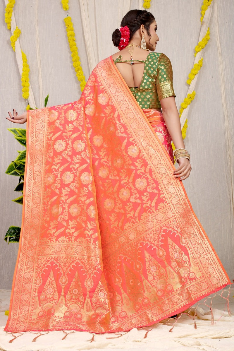 Gleaming Orange Soft Banarasi Silk Saree With Nemesis Blouse Piece