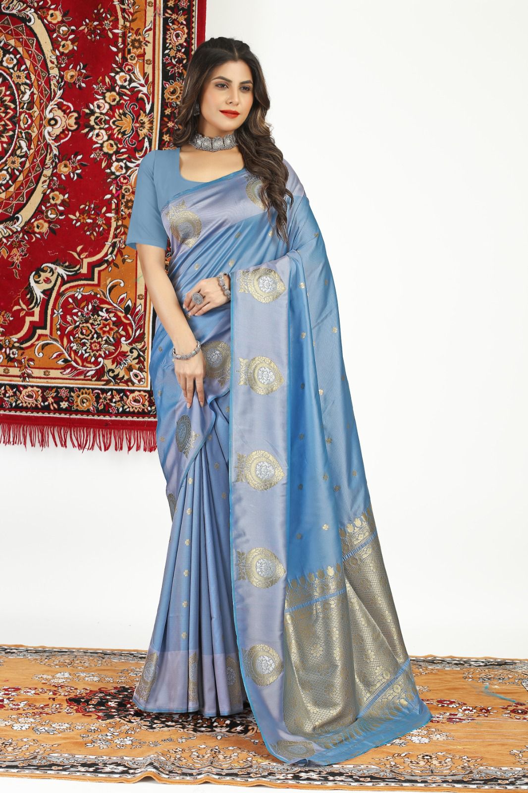 Glowing Grey Banarasi Silk Saree With Pleasurable Blouse Piece