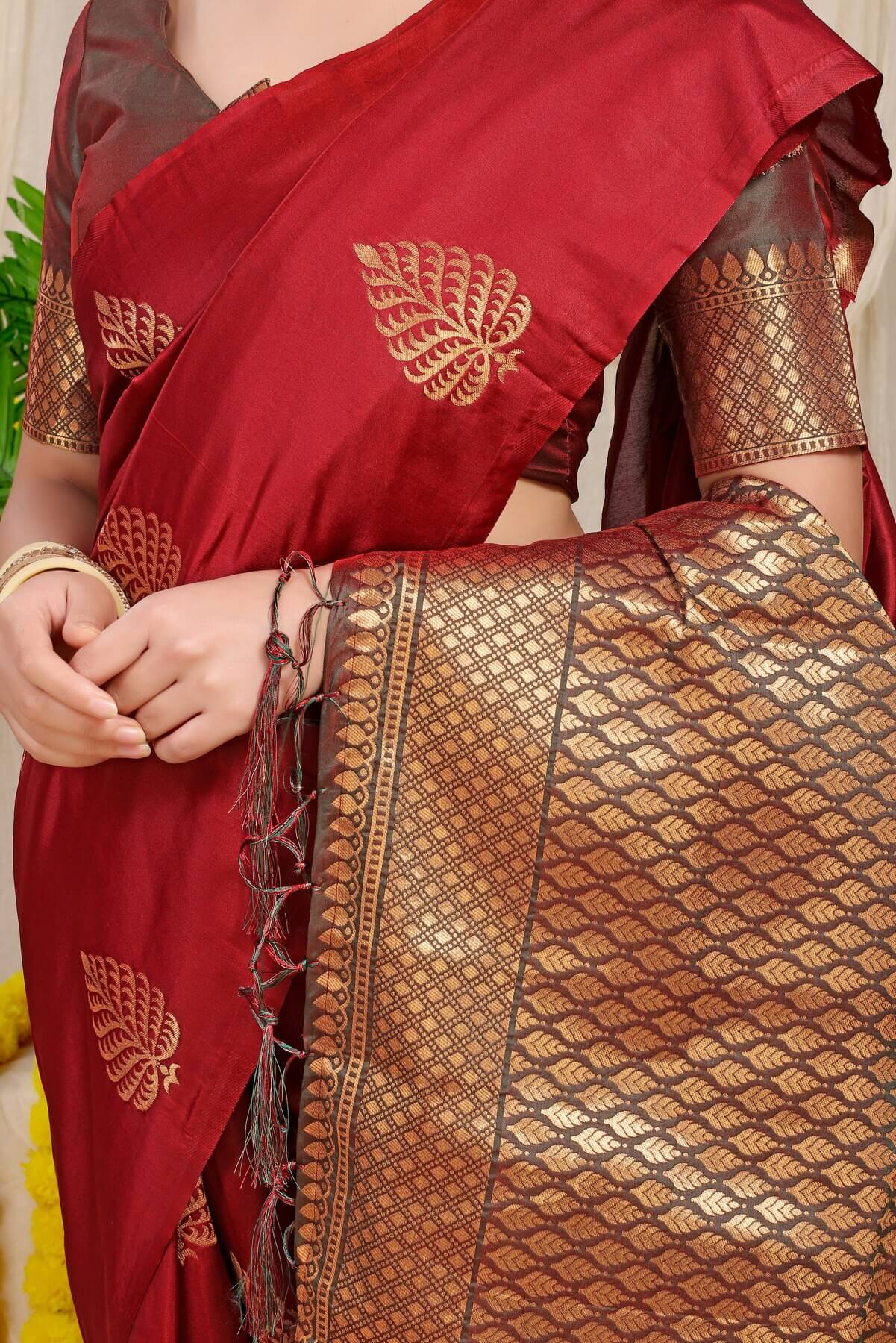 Glowing Maroon Soft Banarasi Silk Saree With Lissome Blouse Piece