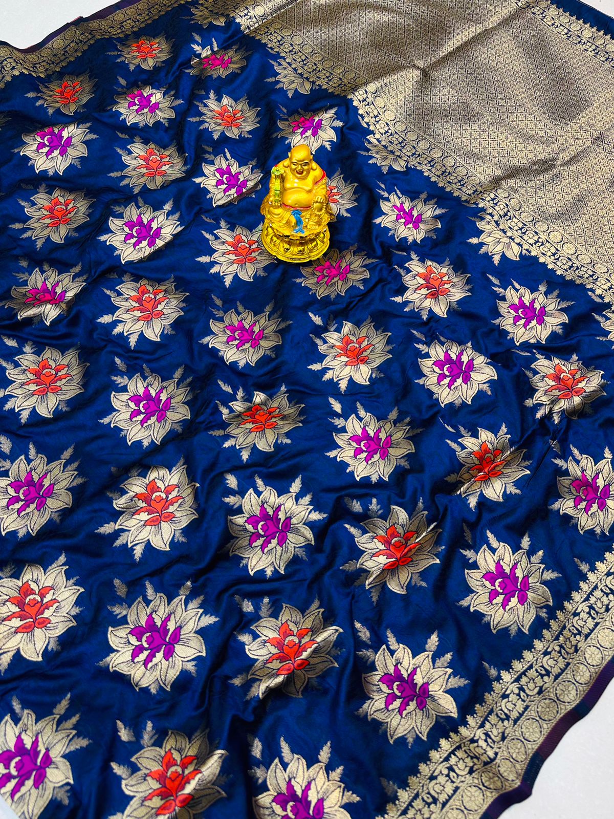 Glowing Navy Blue Banarasi Silk Saree With Ideal Blouse Piece