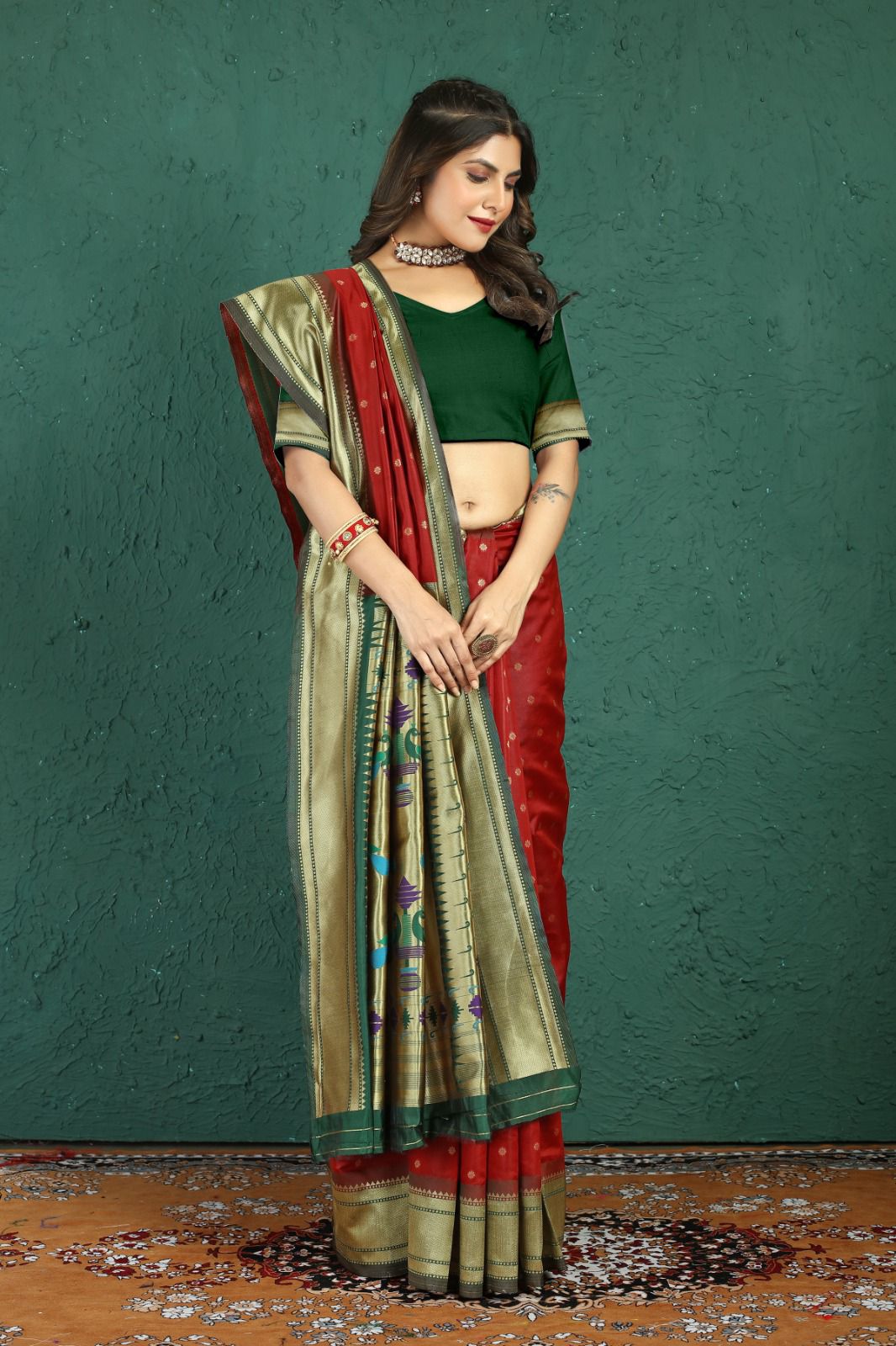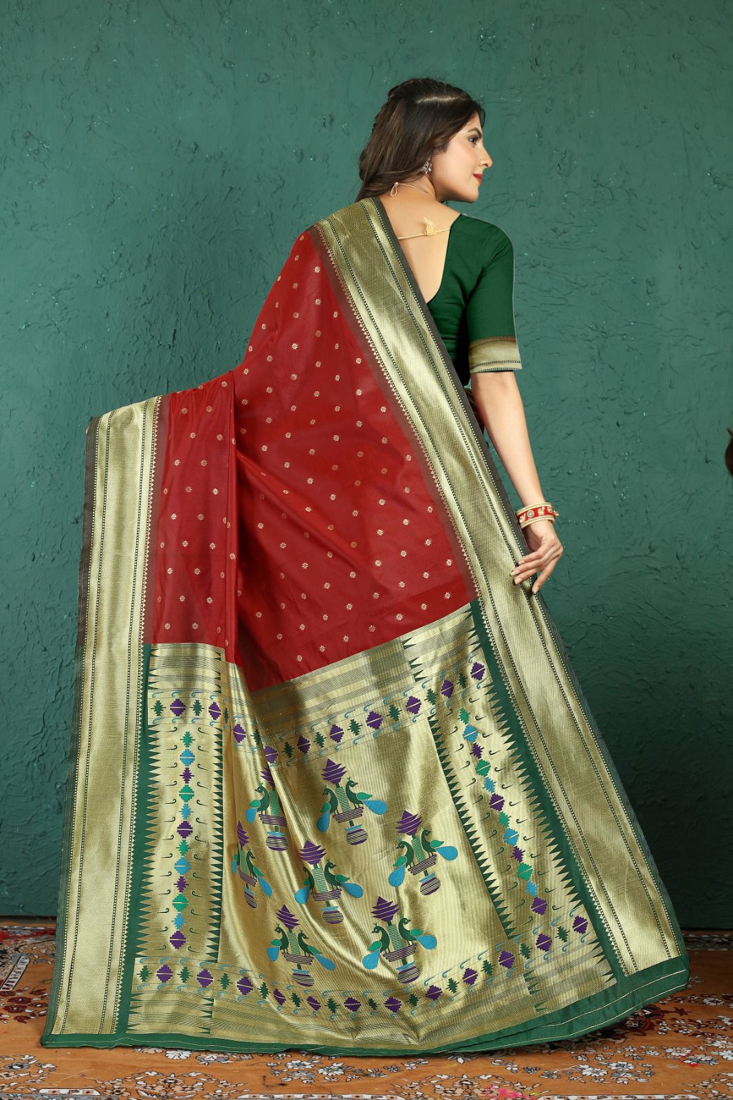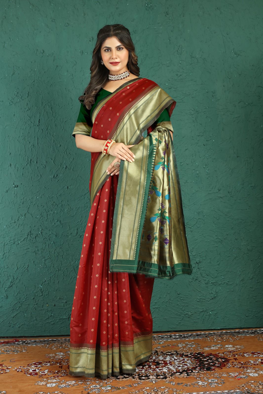 Gorgeous Maroon Paithani Silk Saree With Alluring Blouse Piece