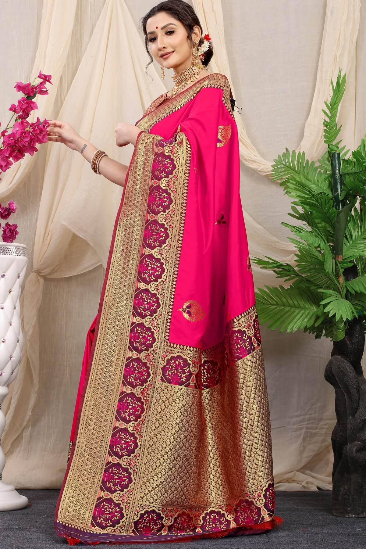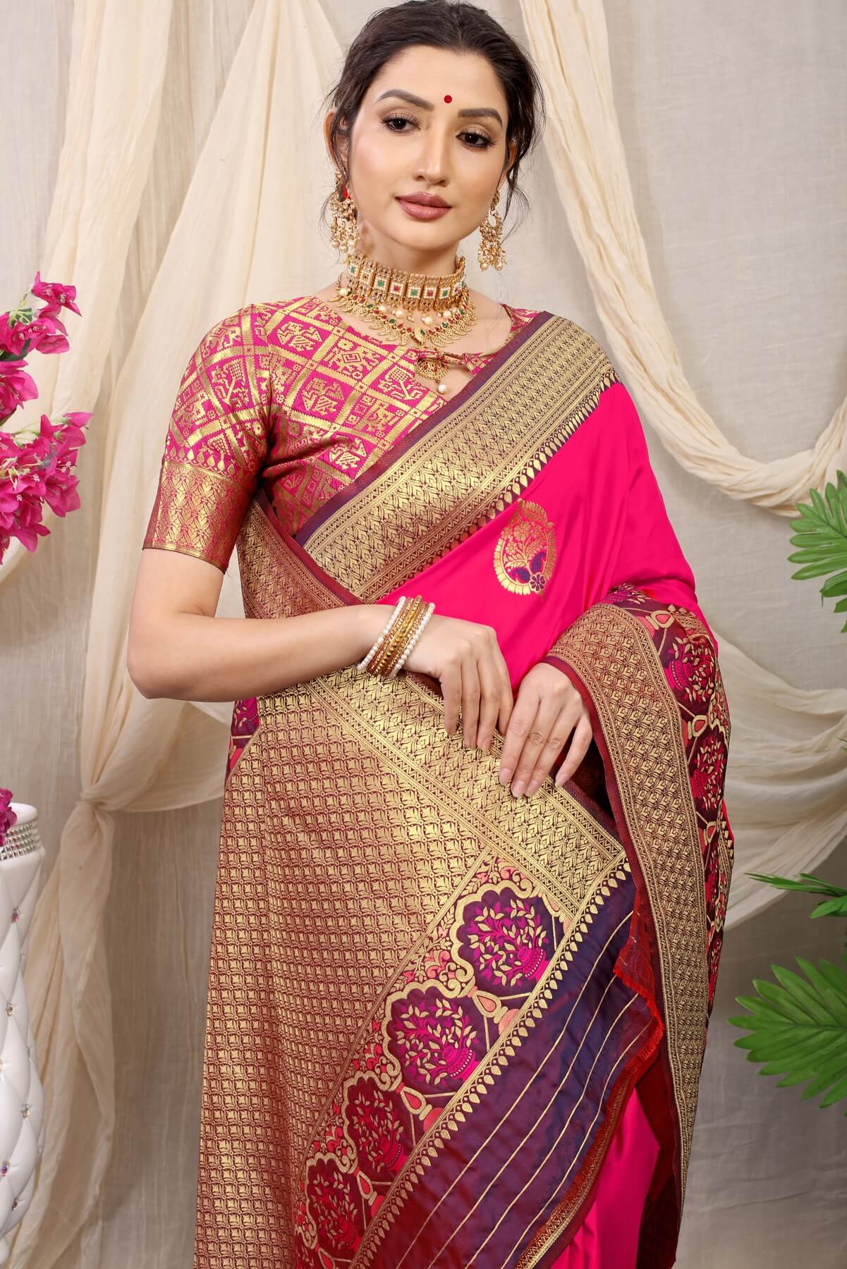 Gossamer Dark Pink Kanjivaram Silk With Sizzling Blouse Piece