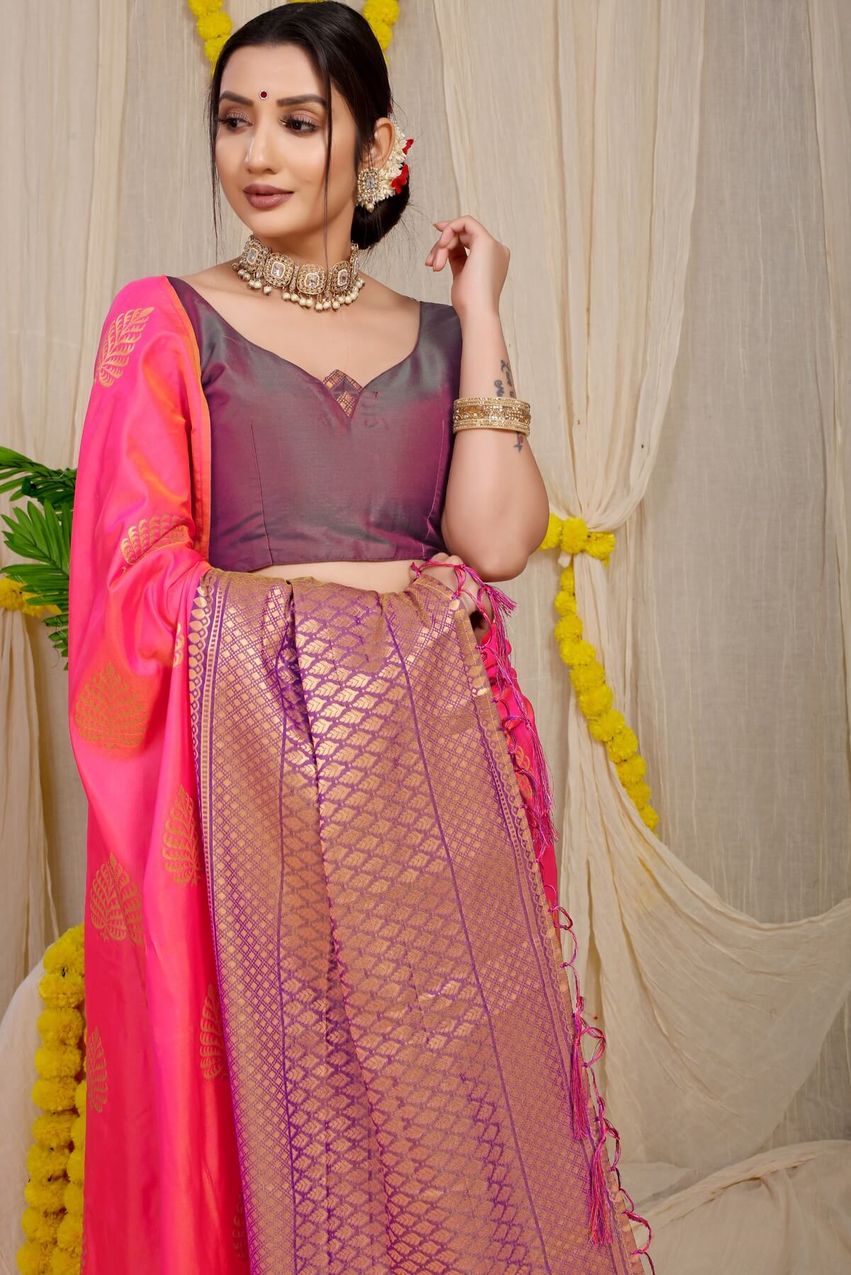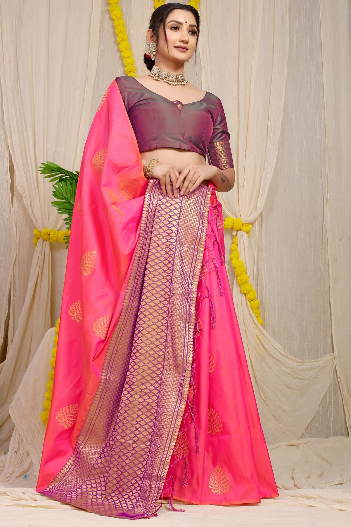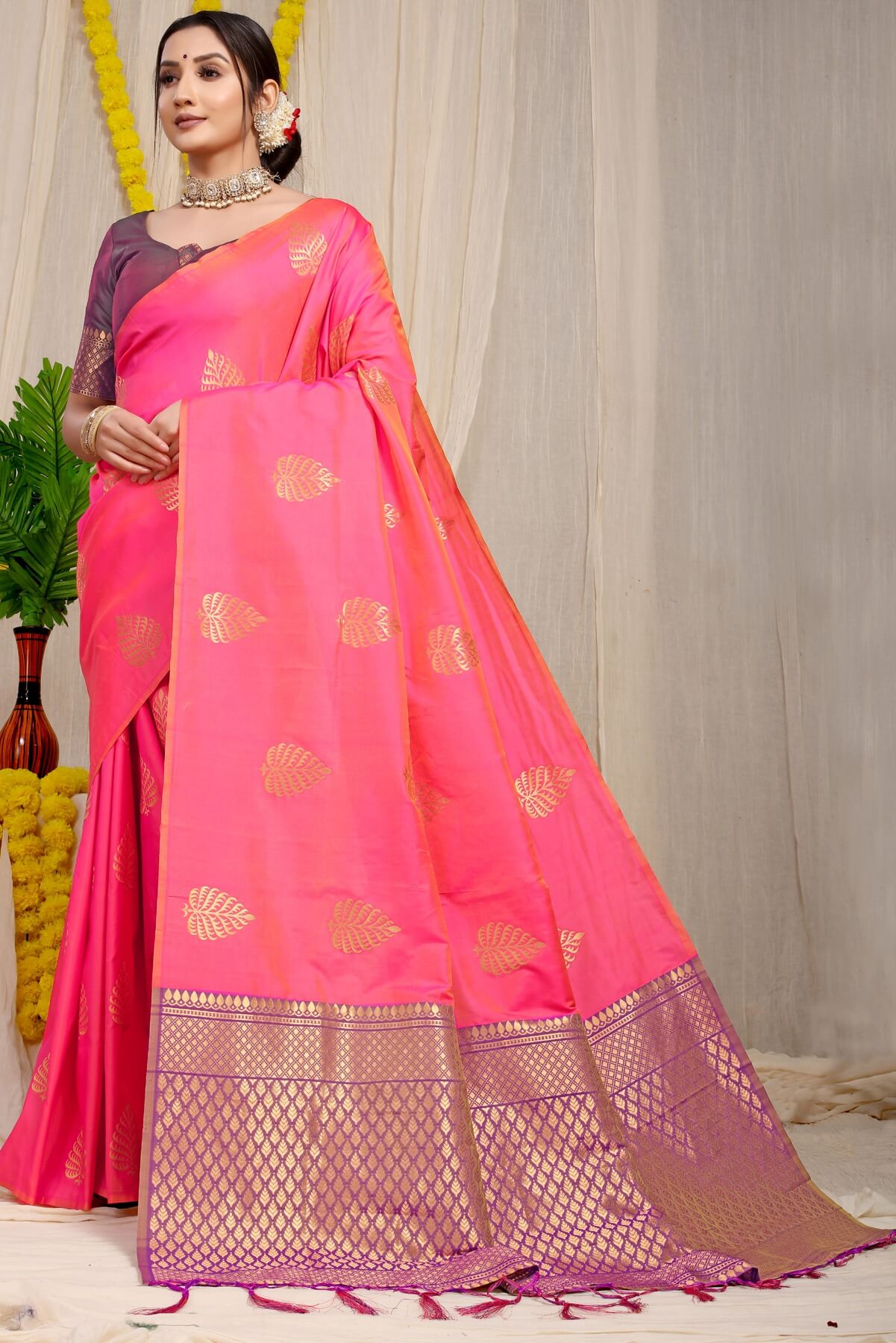 Hypnotic Pink Soft Banarasi Silk Saree With Lissome Blouse Piece