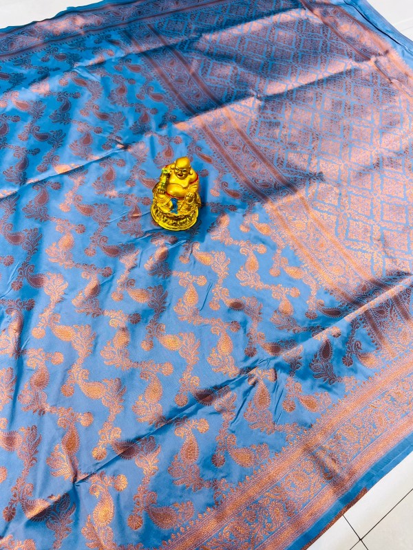 Ideal Blue Soft Banarasi Silk Saree With Beautiful Blouse Piece