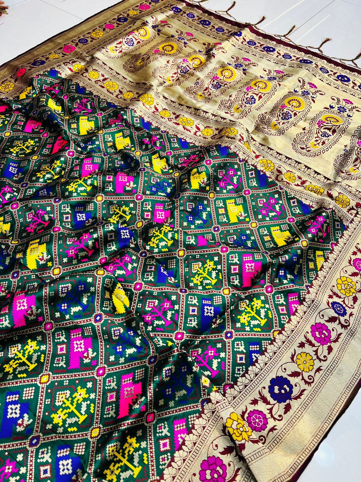 Improbable Dark Green Paithani Silk Saree With Gratifying Blouse Piece
