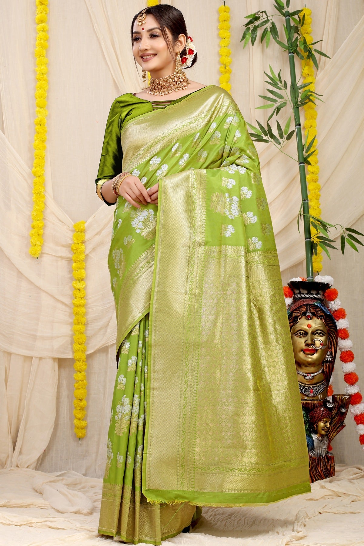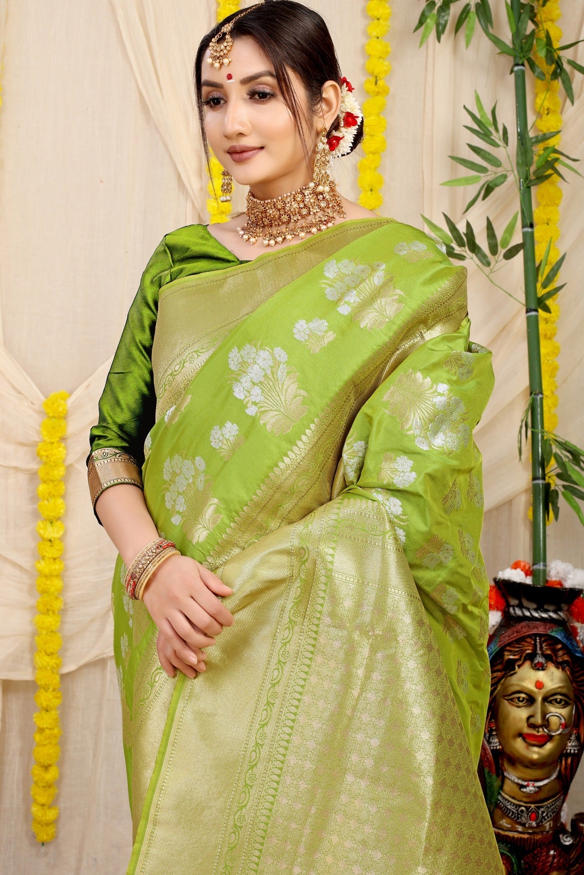 Improbable Green Kanjivaram Silk With Seraglio Blouse Piece