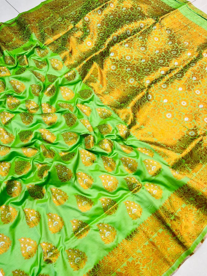 Improbable Pista Soft Banarasi Silk Saree With Splendorous Blouse Piece
