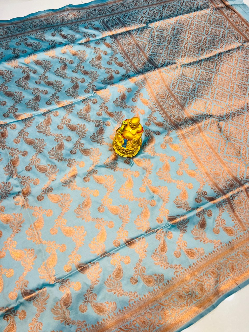 Incredible Sky Soft Banarasi Silk Saree With Beautiful Blouse Piece