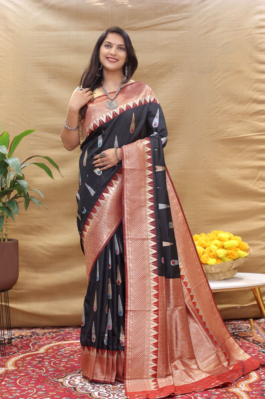 Innovative Black Soft Banarasi Silk Saree With Wonderful Blouse Piece
