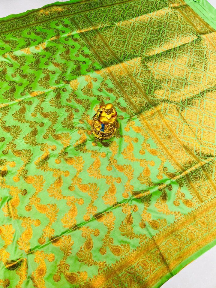Inspiring Green Soft Banarasi Silk Saree With Beautiful Blouse Piece