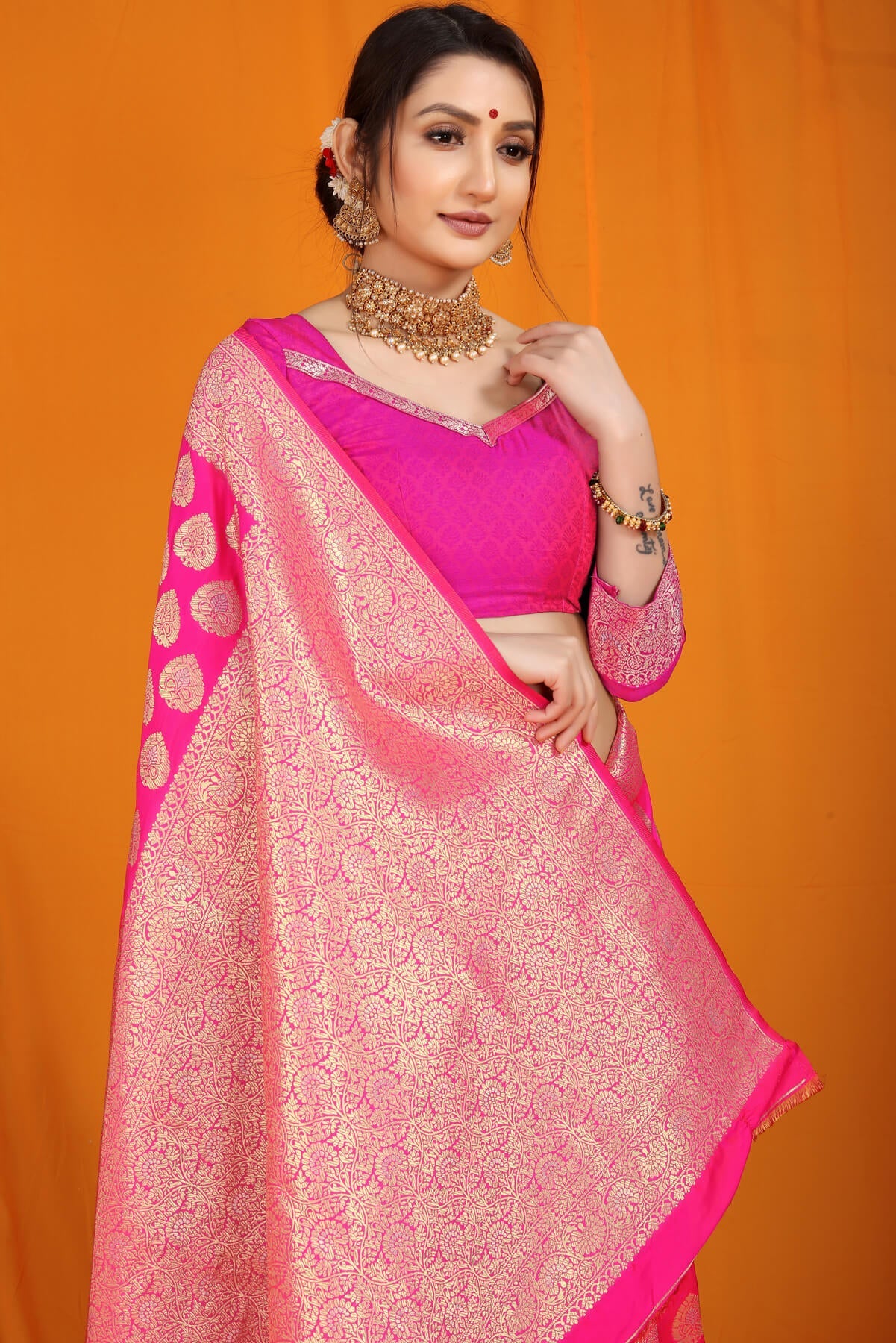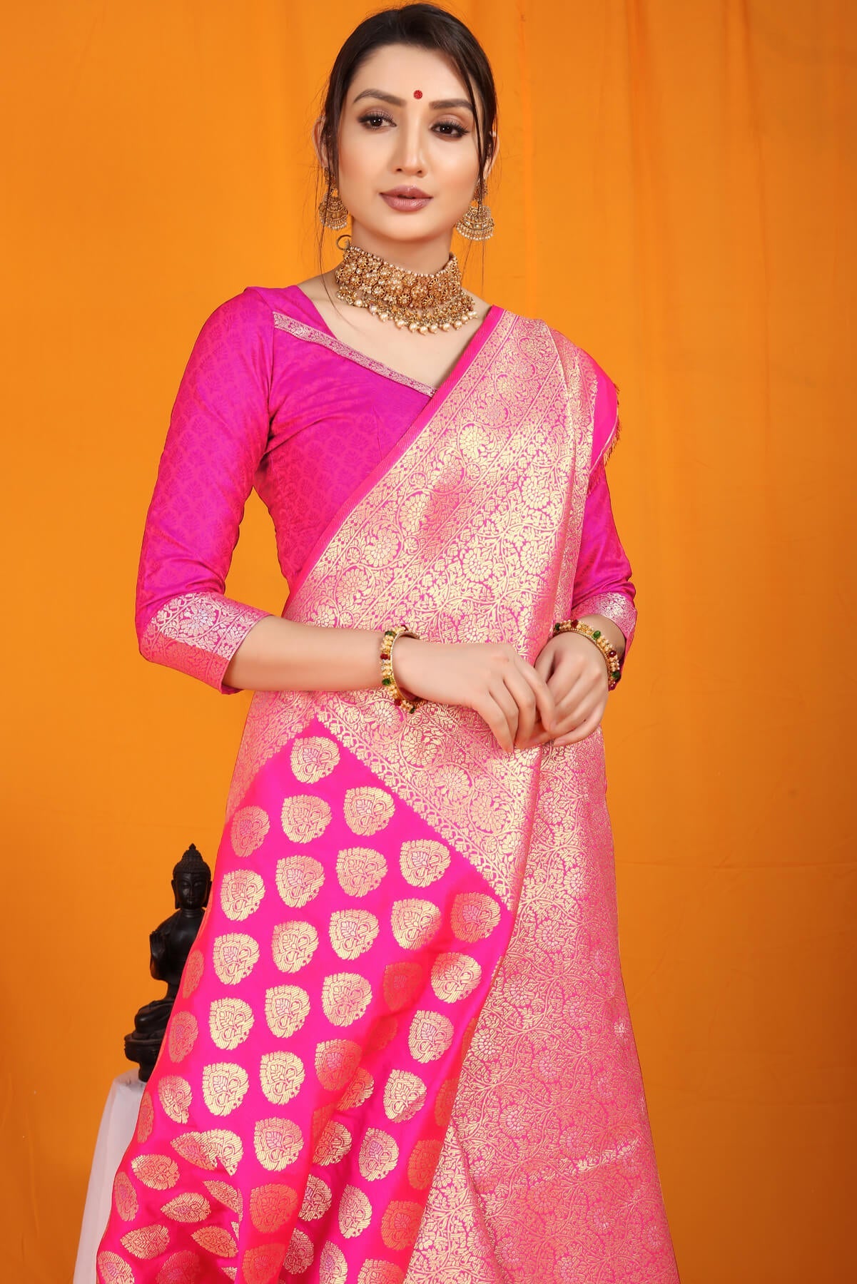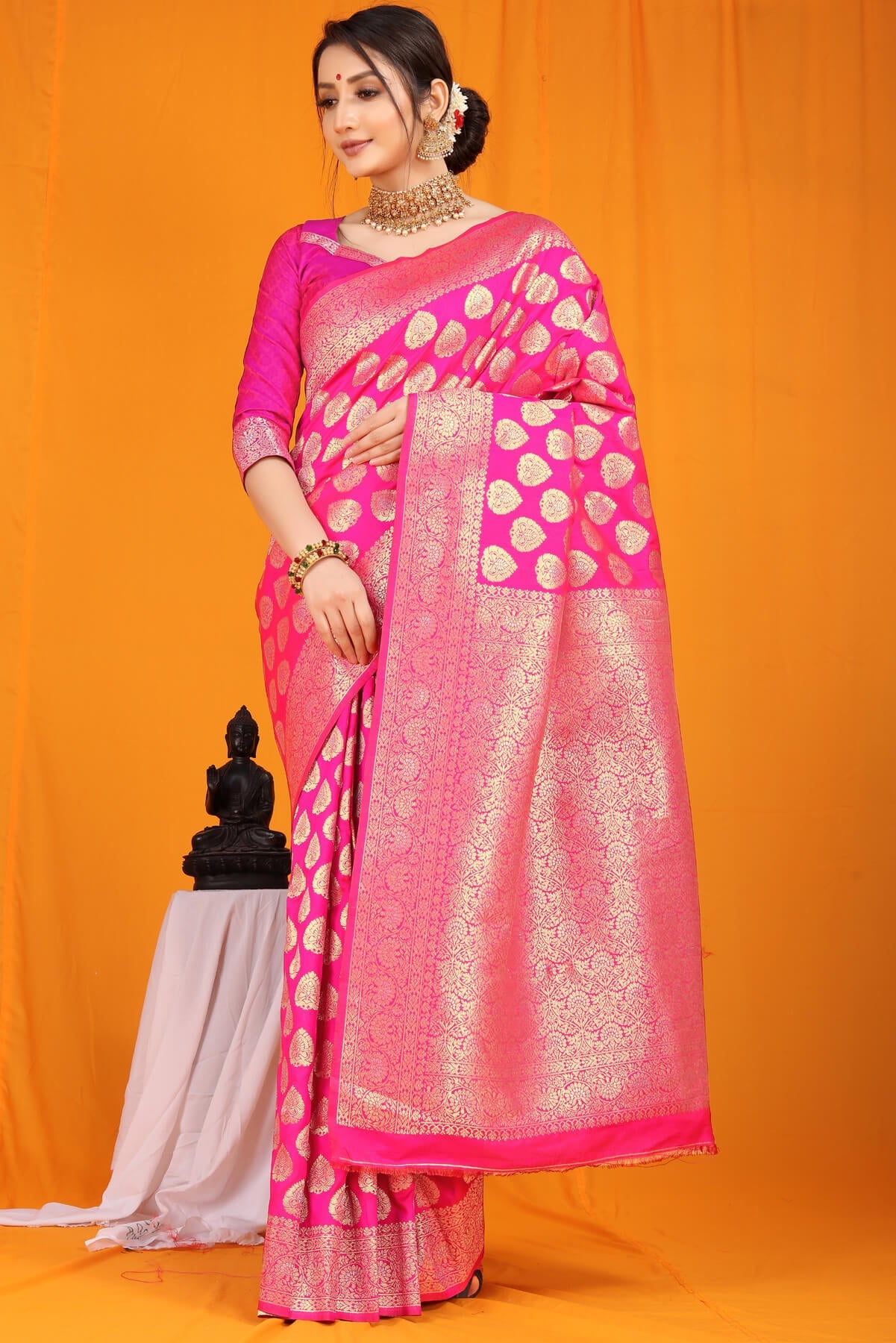 Invaluable Dark Pink Banarasi Silk Saree With Divine Blouse Piece