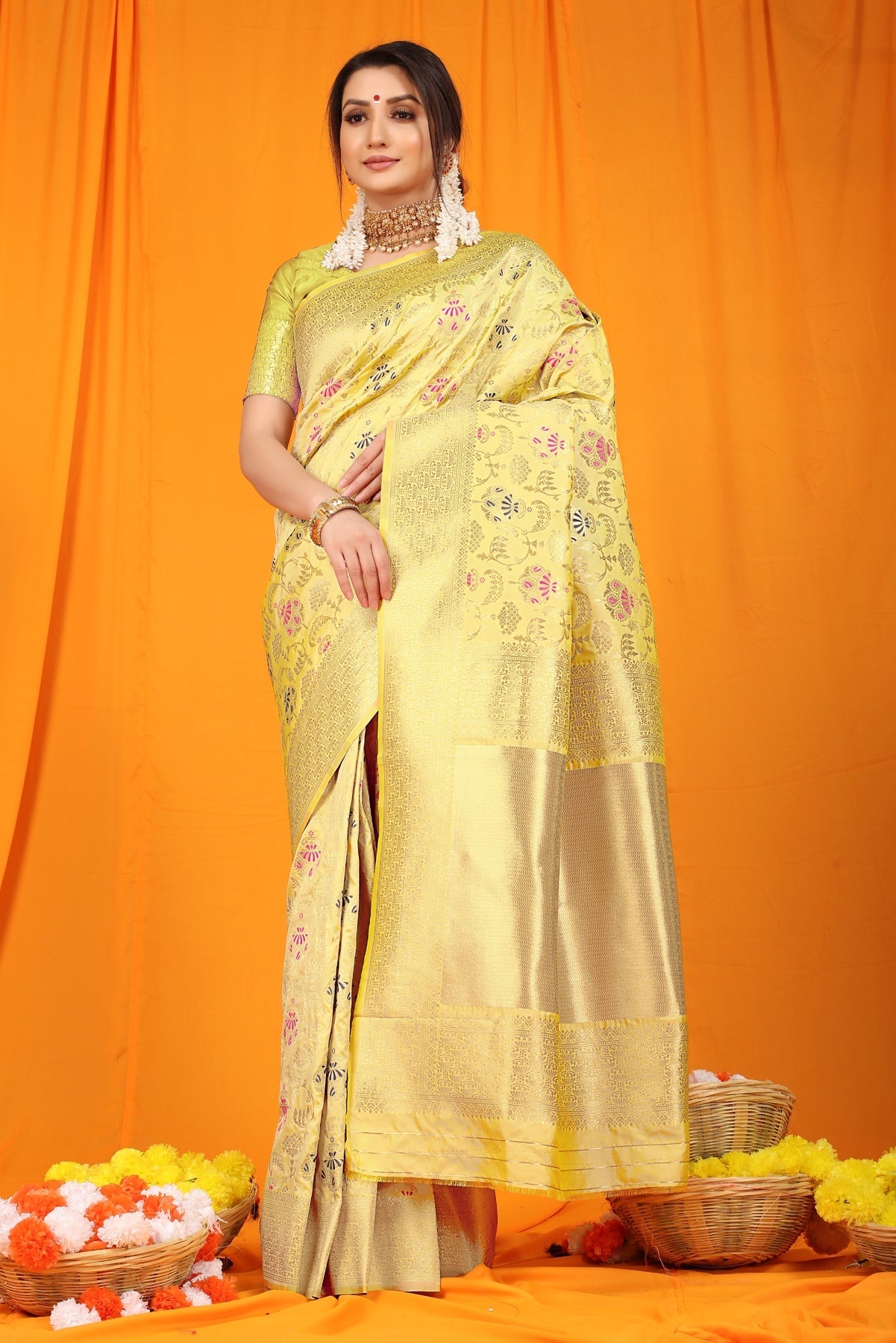 Lagniappe Lemon Kanjivaram Silk With Hypnotic Blouse Piece