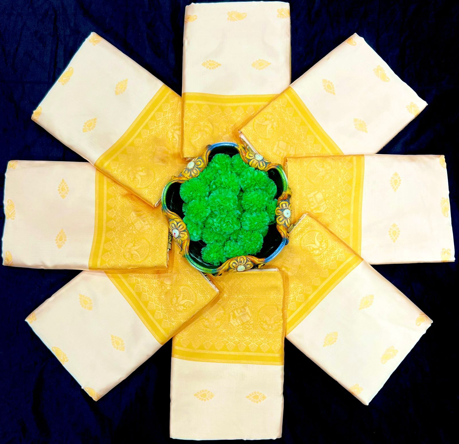 Enhance your elegance with our Luxuriant Off White Soft Silk Saree With Glittering Blouse Piece. Crafted to perfection, this exquisite saree is made from the finest soft silk to give you utmost comfort and grace. The off-white hue adds a touch of sophistication, while the intricate glittering details on the blouse piece make it perfect for your special occasions.