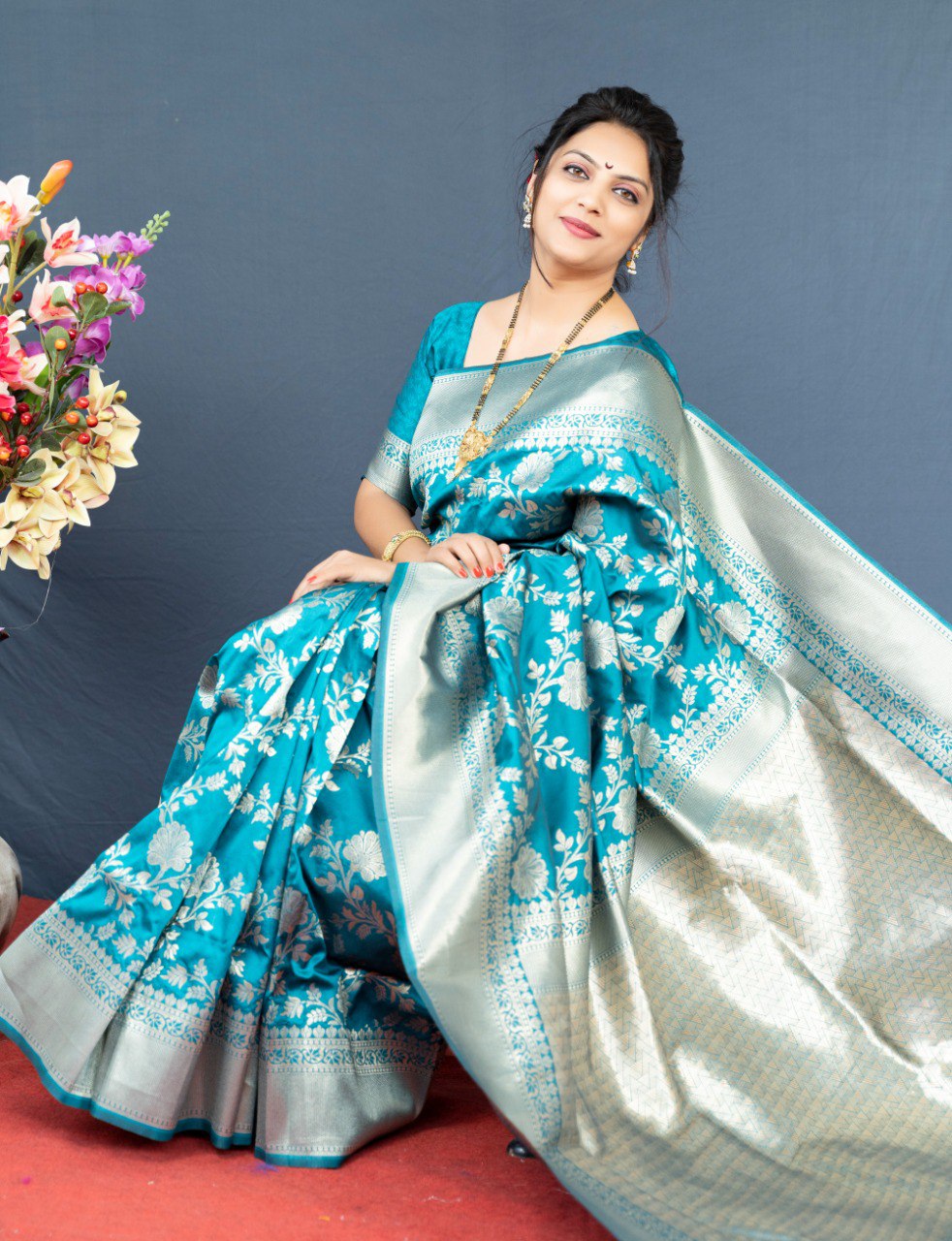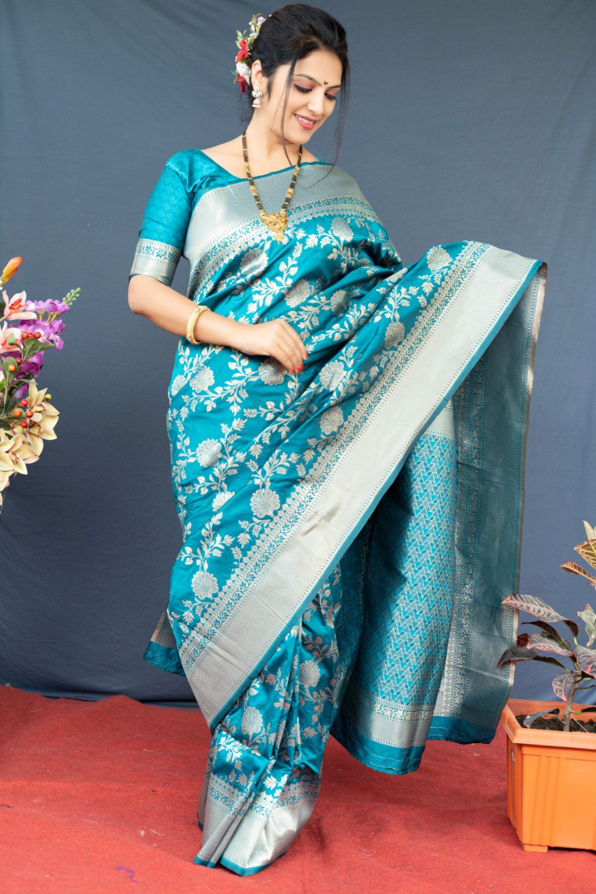 Magnificat Firozi Banarasi Silk Saree With Lissome Blouse Piece