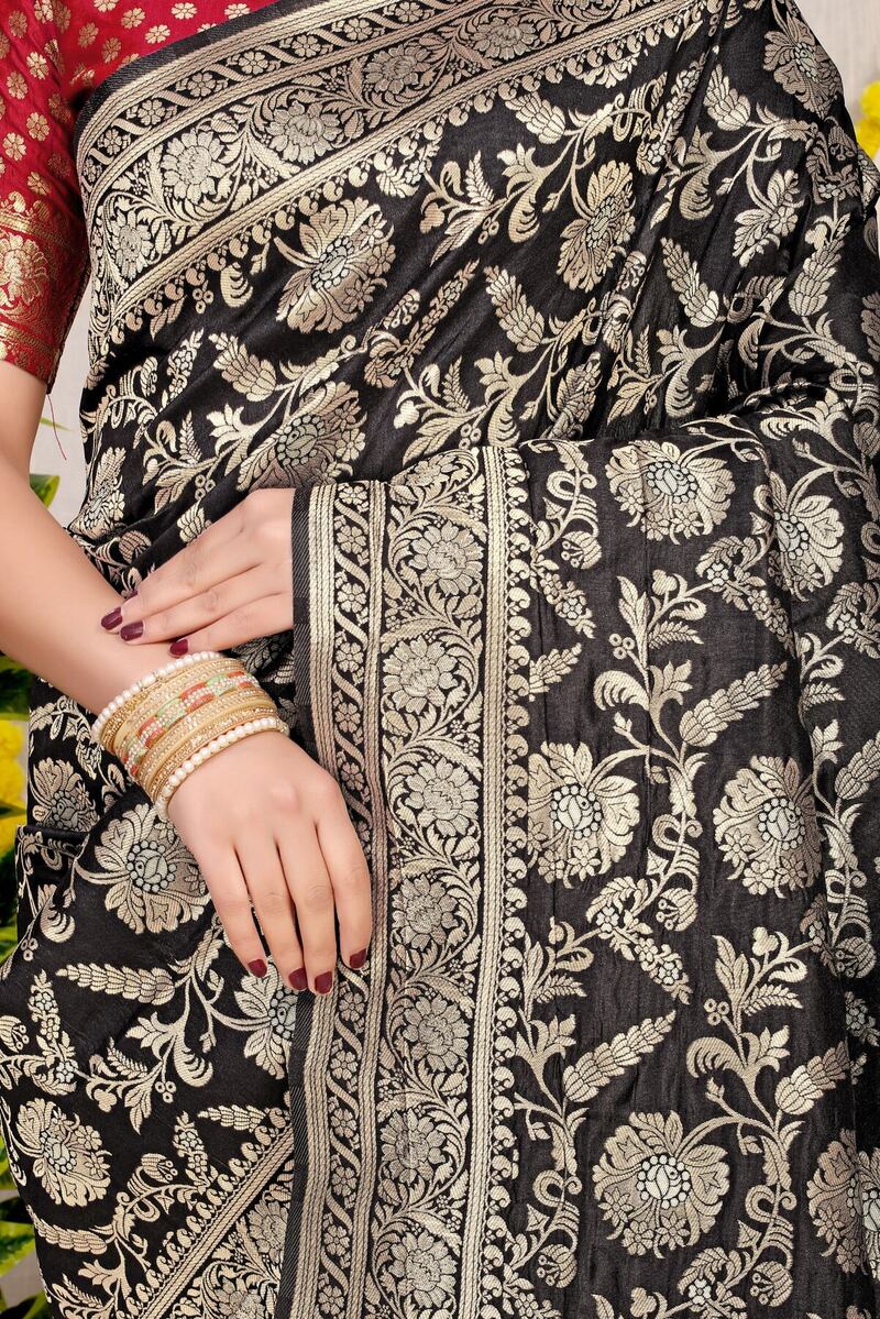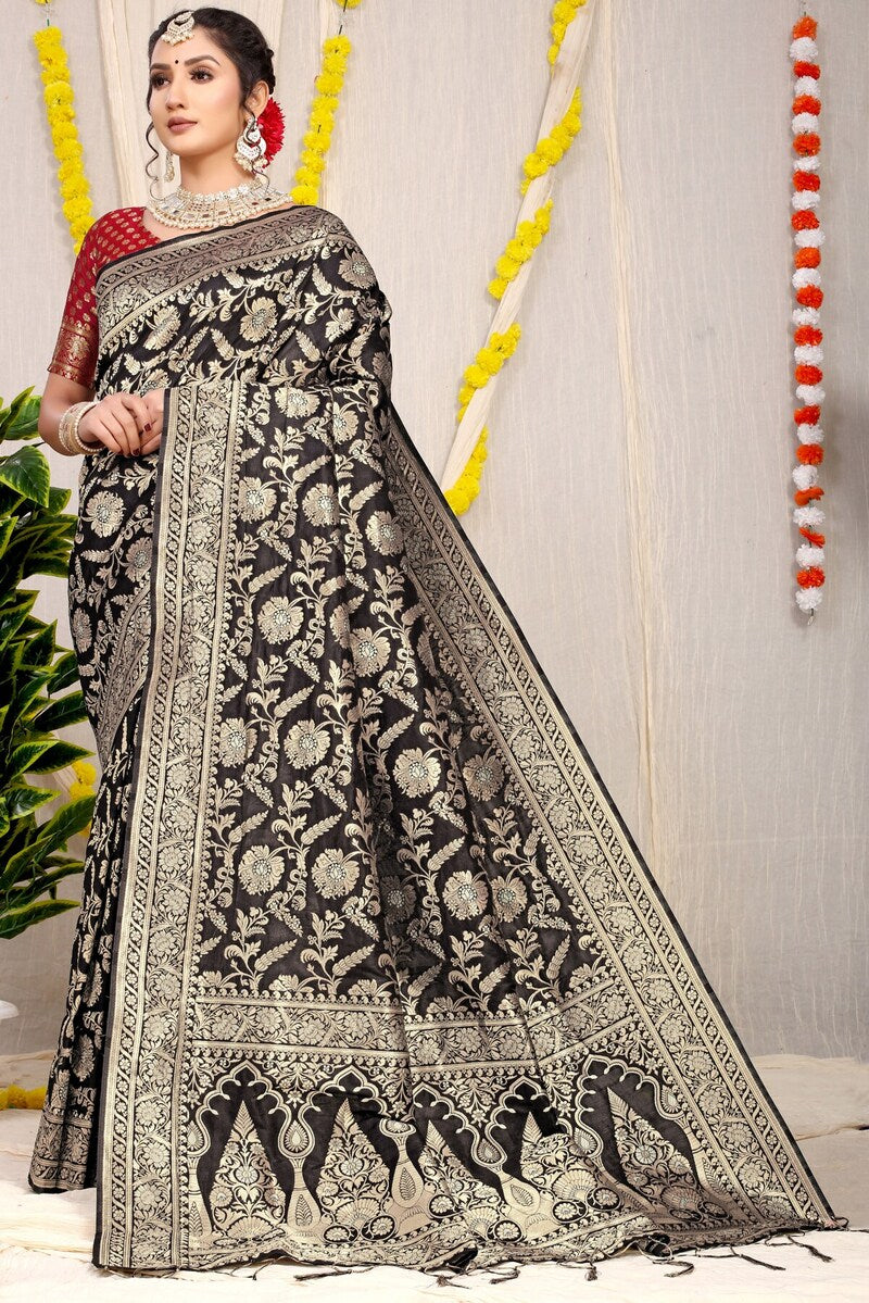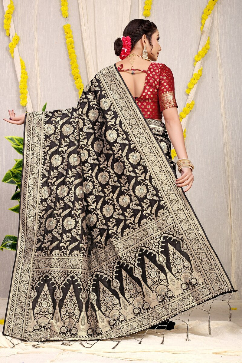 Mesmerising Black Soft Banarasi Silk Saree With Nemesis Blouse Piece