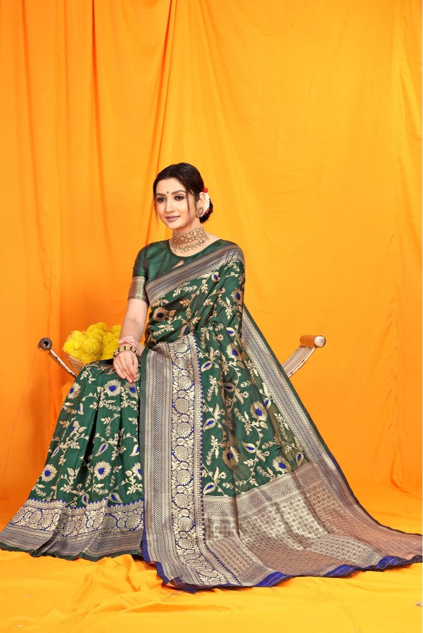 Mesmerising Green Kanjivaram Silk With Tremendous Blouse Piece
