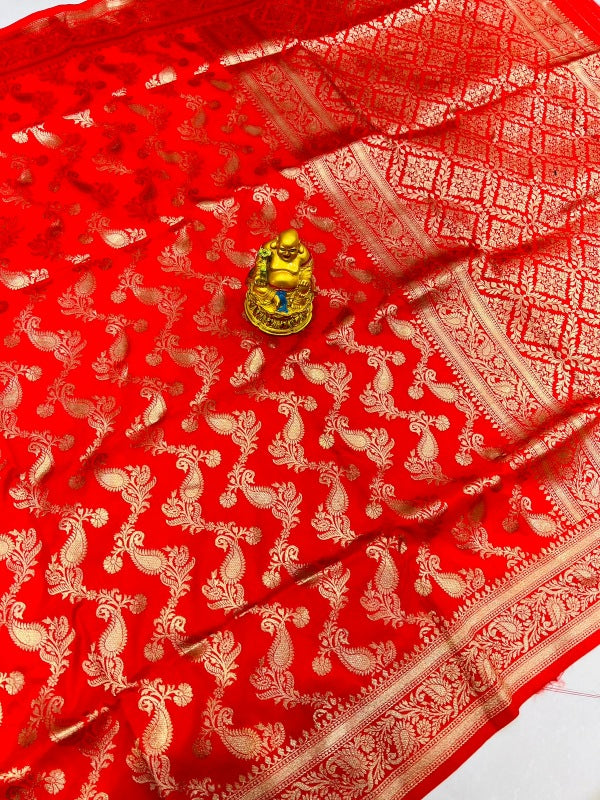Petrichor Red Soft Banarasi Silk Saree With Beautiful Blouse Piece