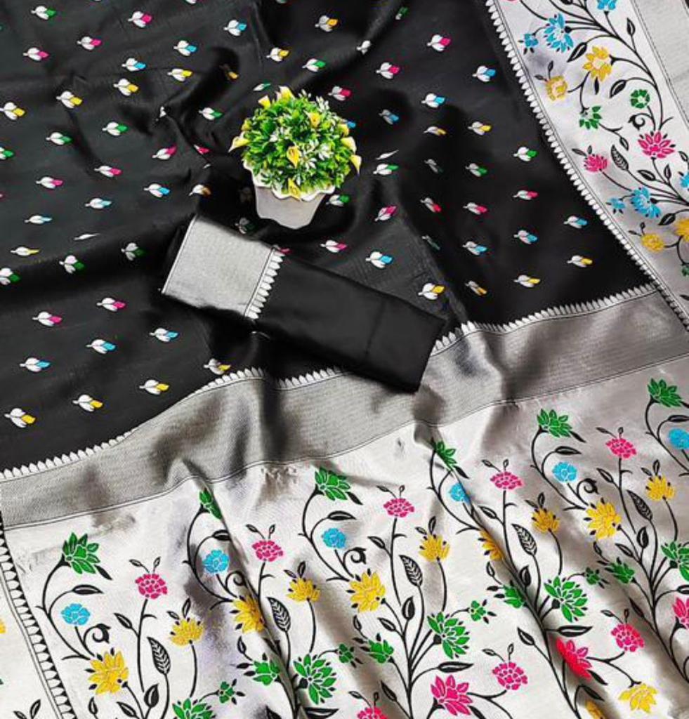 Pleasant Black Paithani Silk Saree With Radiant Blouse Piece