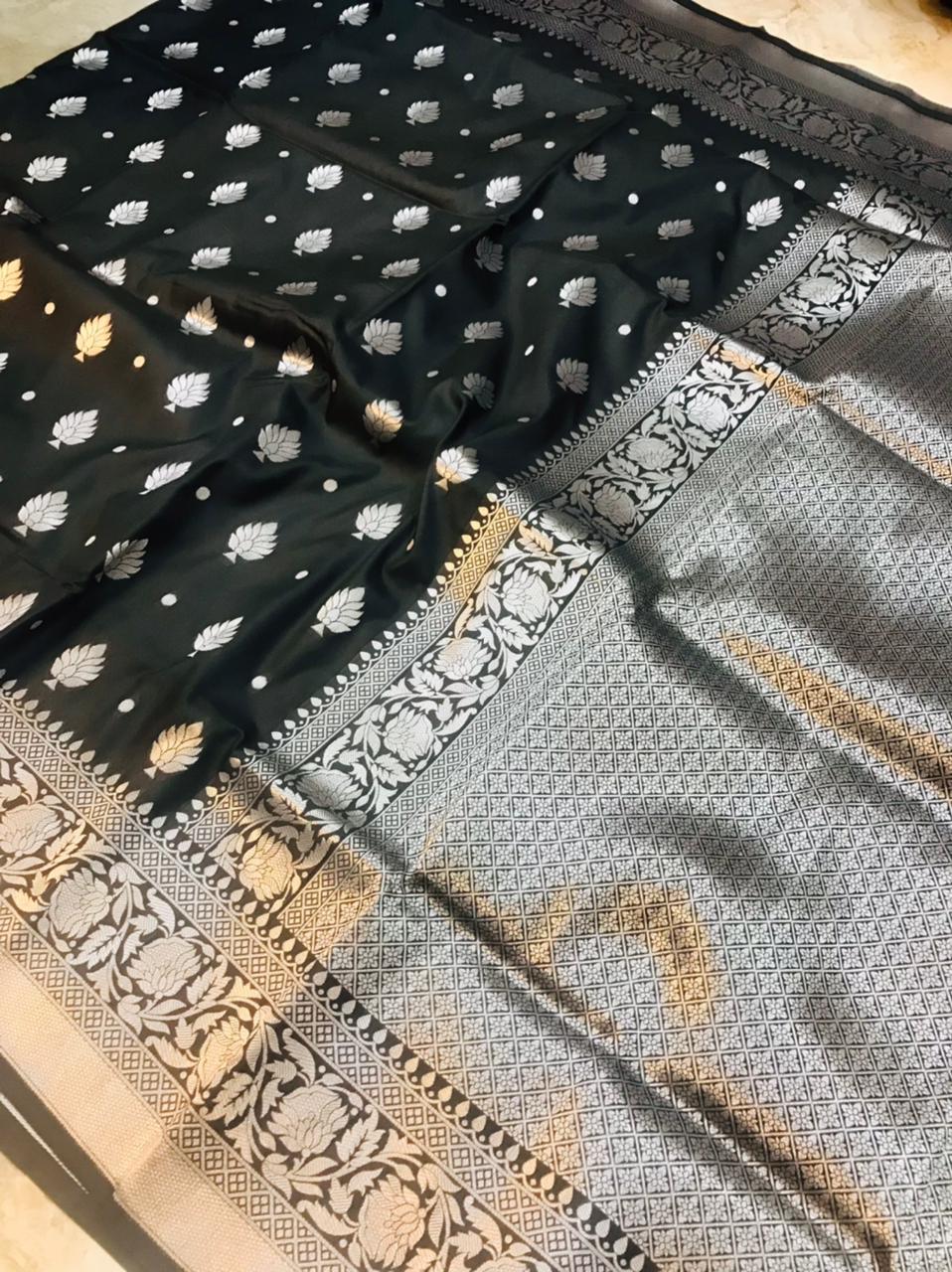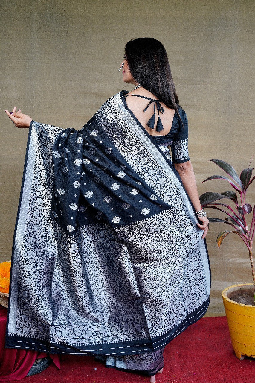 Proficient Black Banarasi Silk Saree With Symmetrical Blouse Piece