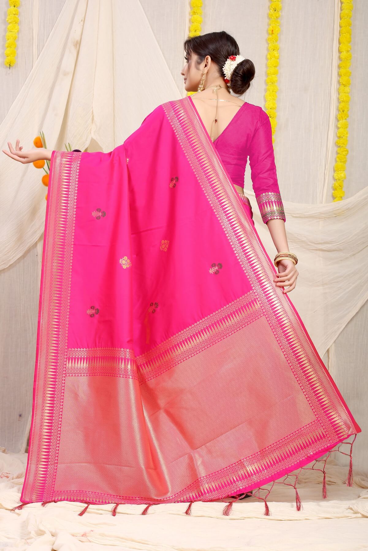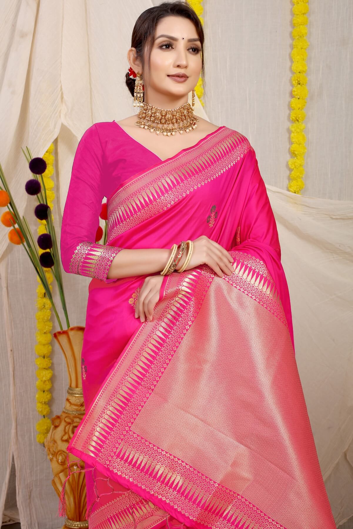Quintessential Dark Pink Banarasi Silk Saree With Magnetic Blouse Piece