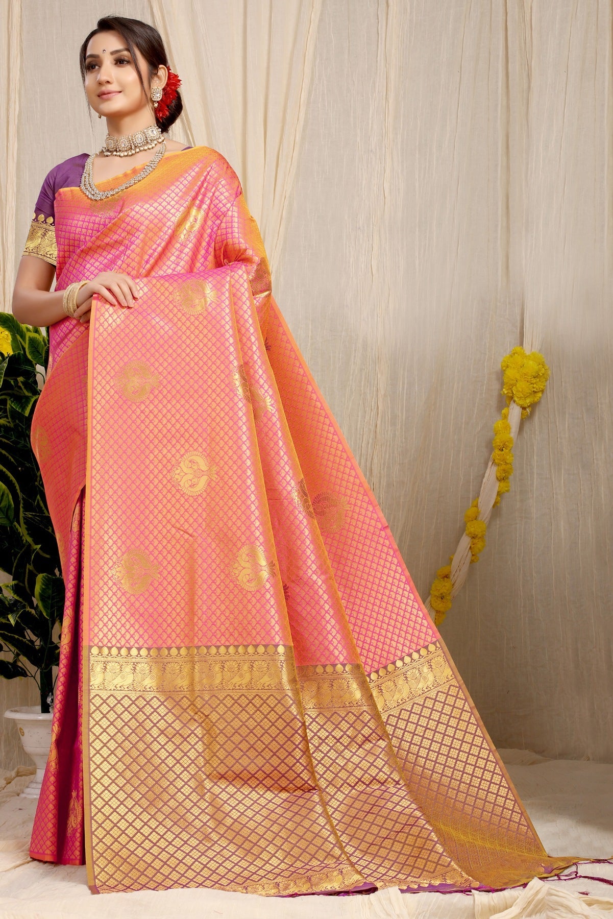 Radiant Pink Soft Silk Saree With Incredible Blouse Piece