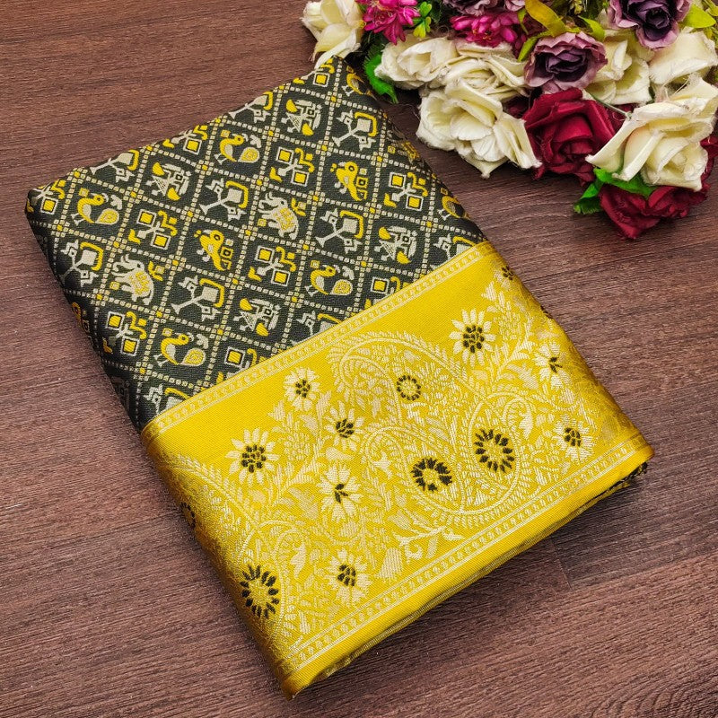 Ravishing Black Soft Silk Saree With Twirling Blouse Piece