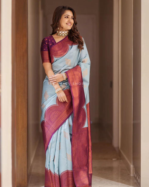 Splendiferous Sky Soft Silk Saree With Incredible Blouse Piece
