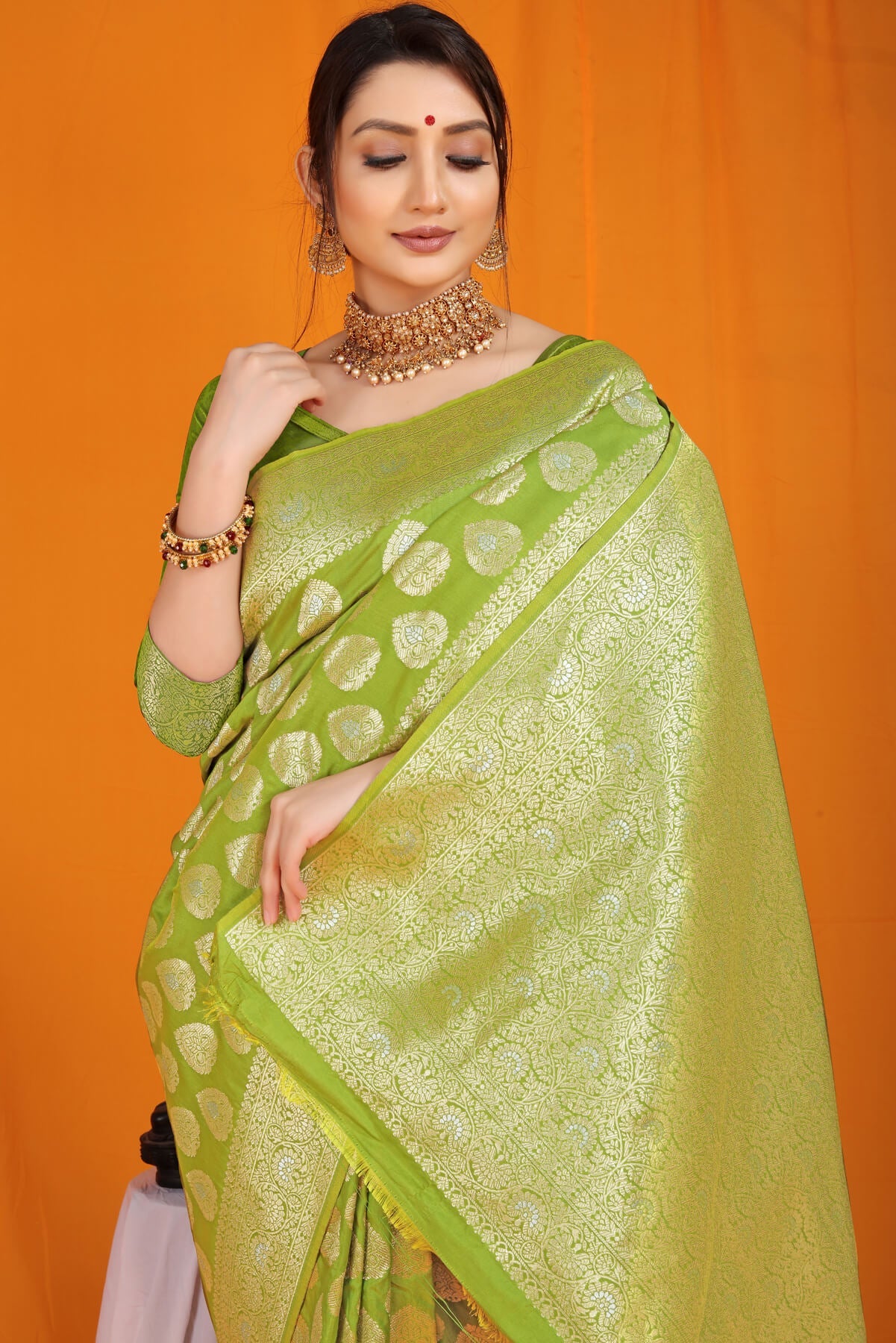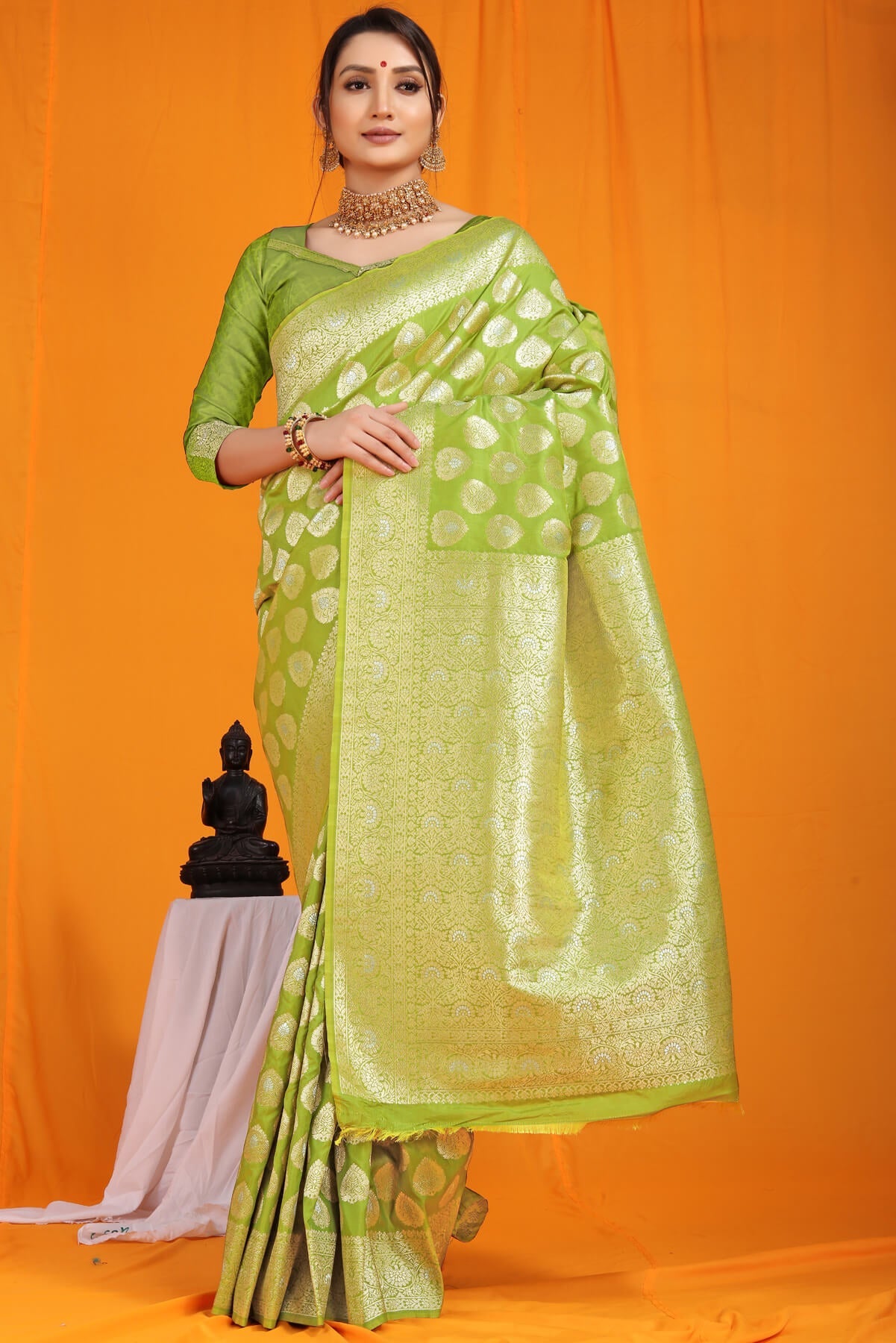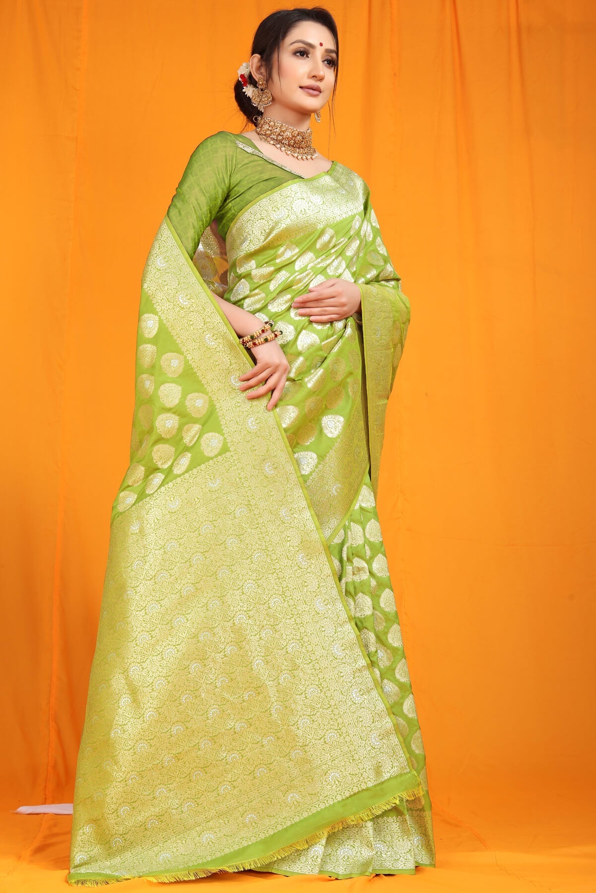 Staring Green Banarasi Silk Saree With Divine Blouse Piece