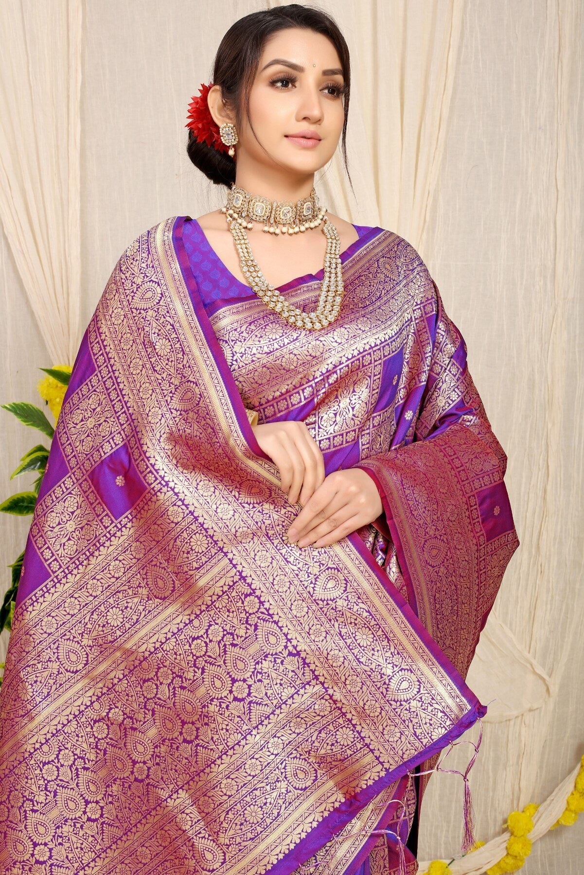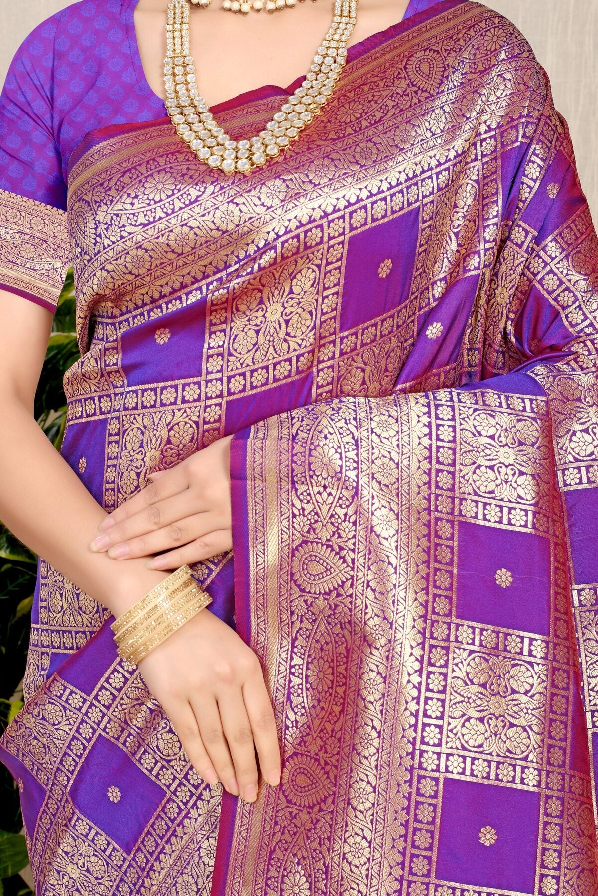 Staring Mehndi Kanjivaram Silk Saree With Glittering Blouse Piece