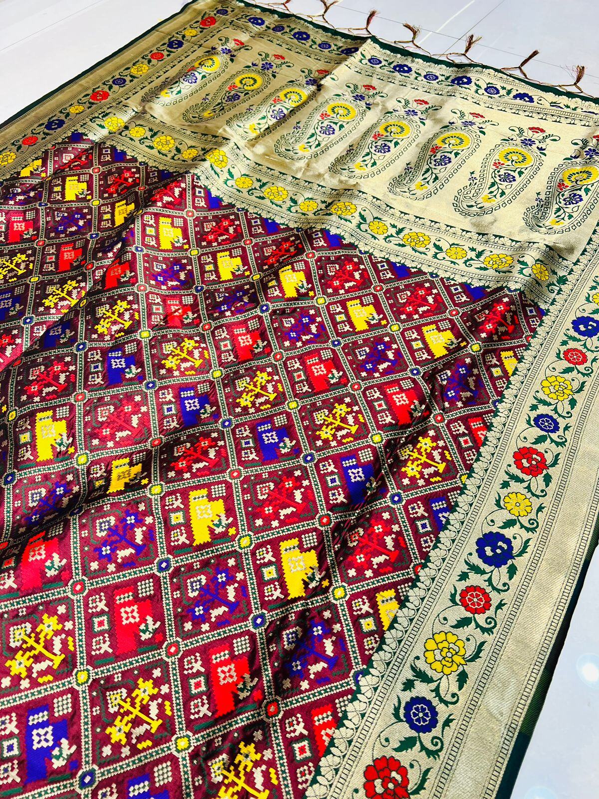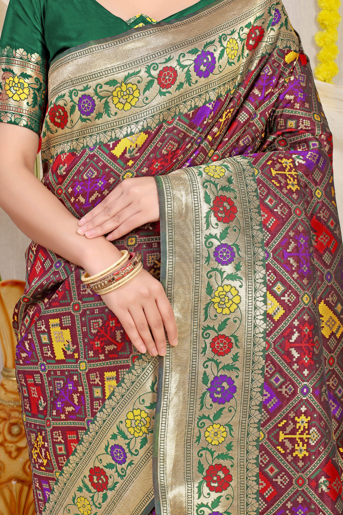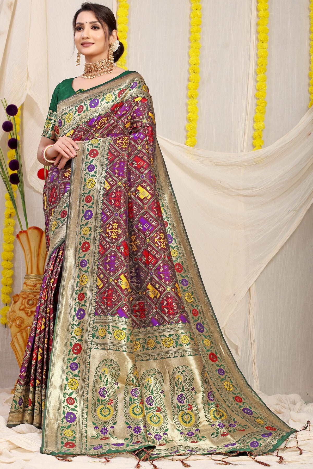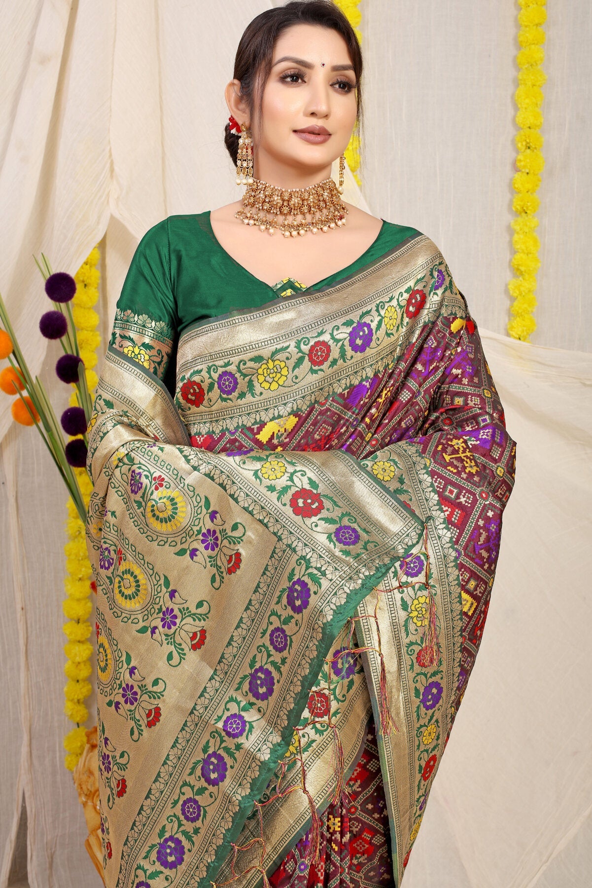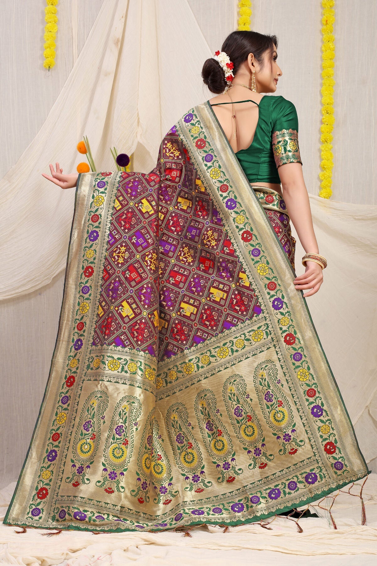 Surreptitious Wine Paithani Silk Saree With Dalliance Blouse Piece