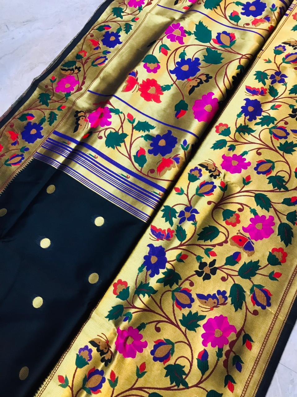 Twirling Black Paithani Silk Saree With Sizzling Blouse Piece