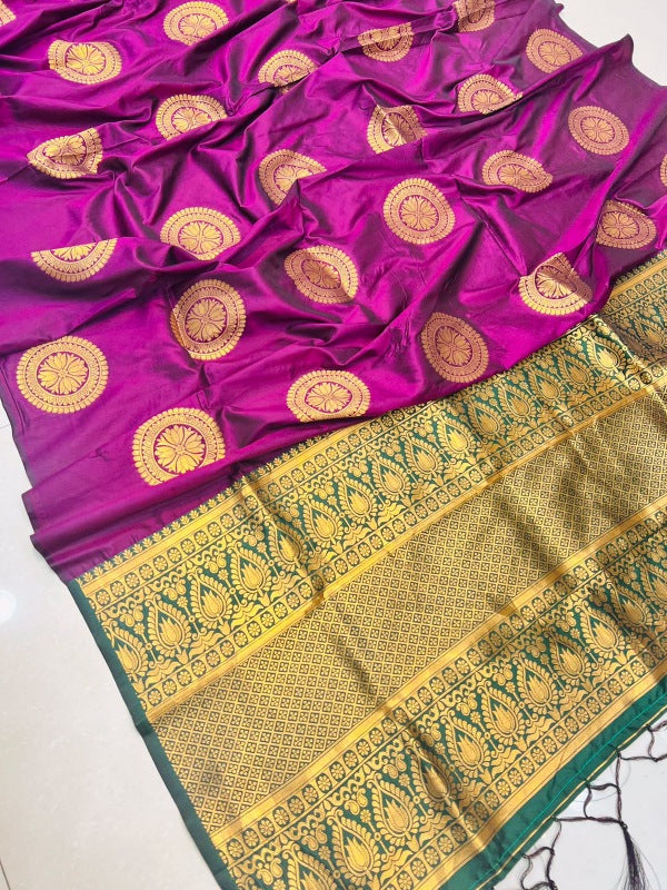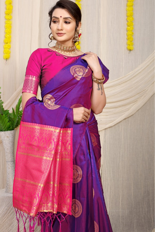 Unique Purple Kanjivaram Silk Saree and Angelic Blouse Piece
