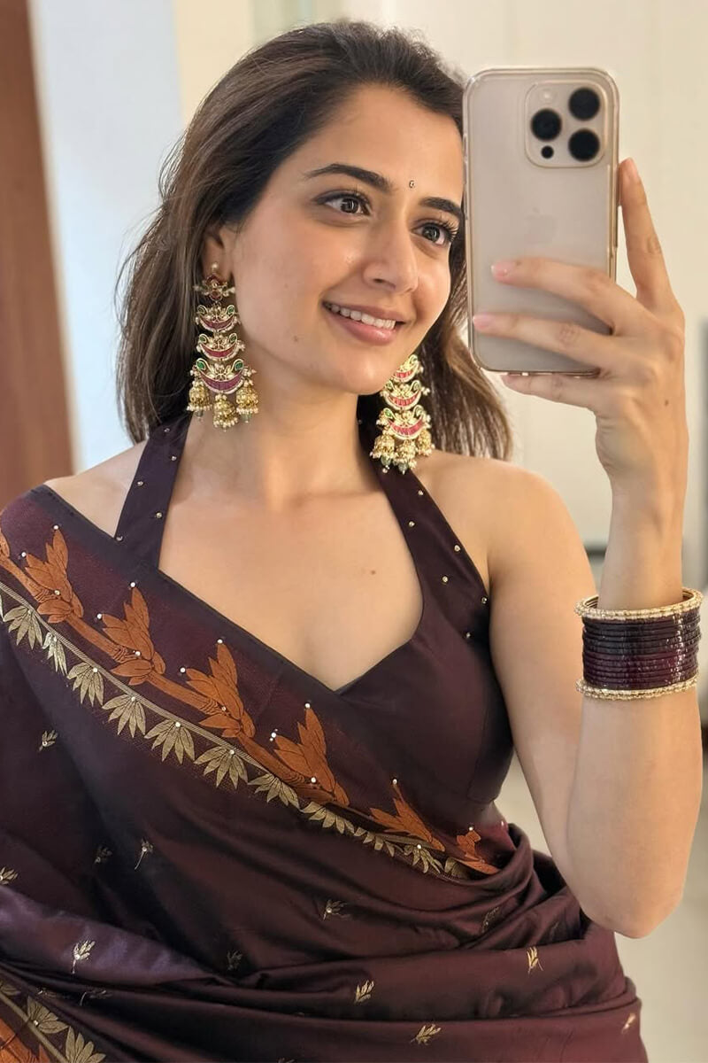 Vibrant Brown Soft Silk Saree With Excellent Blouse Piece
