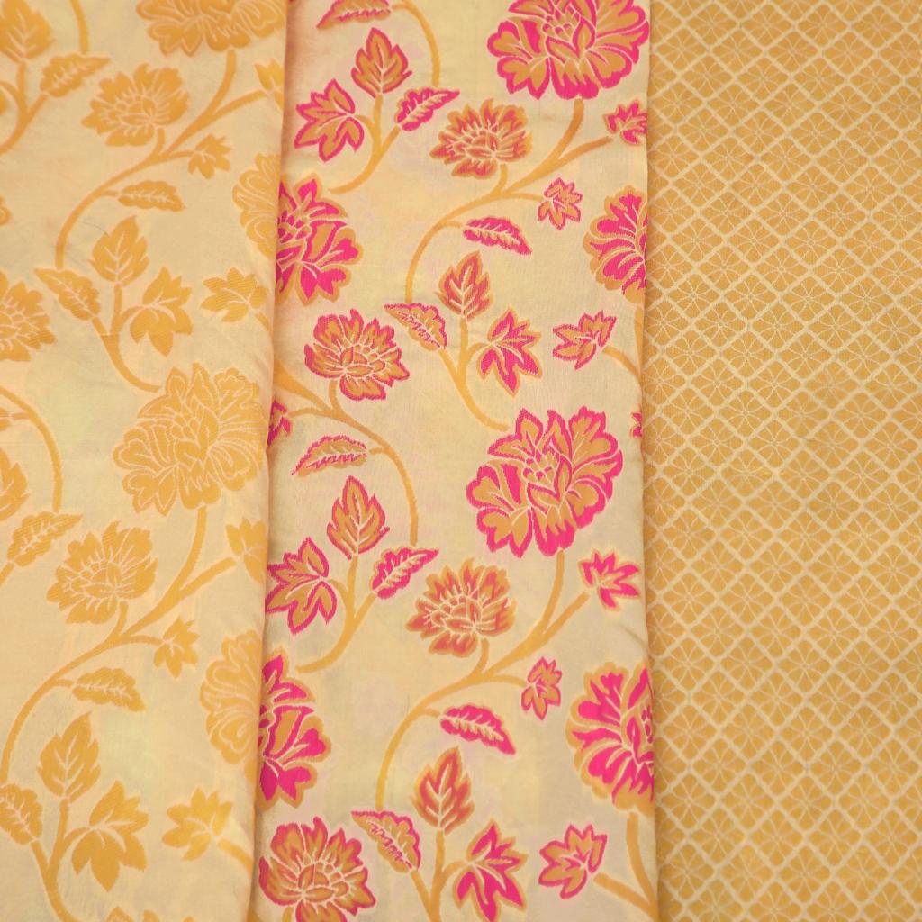 This banarasi silk saree is a perfect companion for a special occasion. The colours of love with a touch of gold is surely going to win hearts. And you will never get enough of this softest silky smooth like a butter which obviously drapes like a dream on the body.