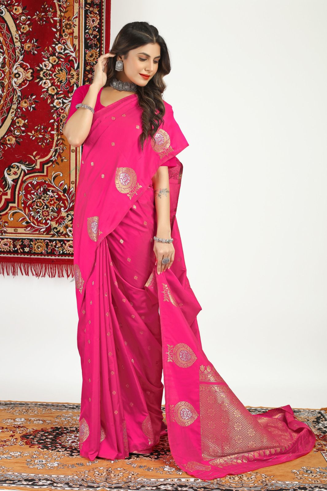Wonderful Dark Pink Banarasi Silk Saree With Mesmerising Blouse Piece