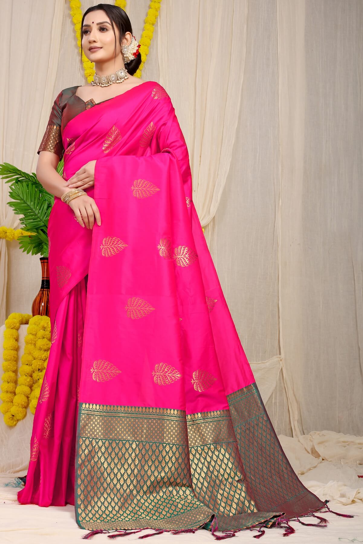 Wonderful Dark Pink Soft Banarasi Silk Saree With Lissome Blouse Piece