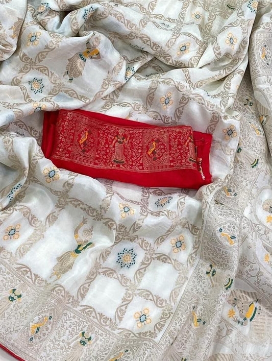 Moiety Off White Soft Banarasi Silk Saree With Panoply Blouse Piece