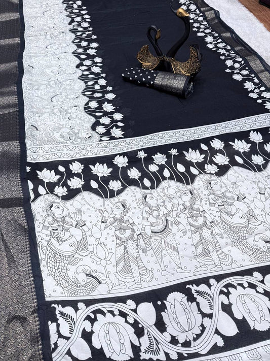 Ailurophile Black Digital Printed Dola Silk Saree With Demesne Blouse Piece
