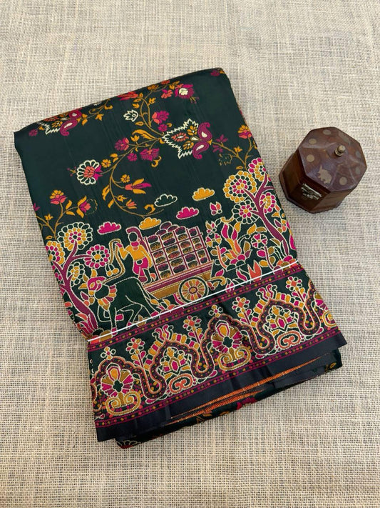 Exceptional Dark Green Soft Silk Saree With Glowing Blouse Piece
